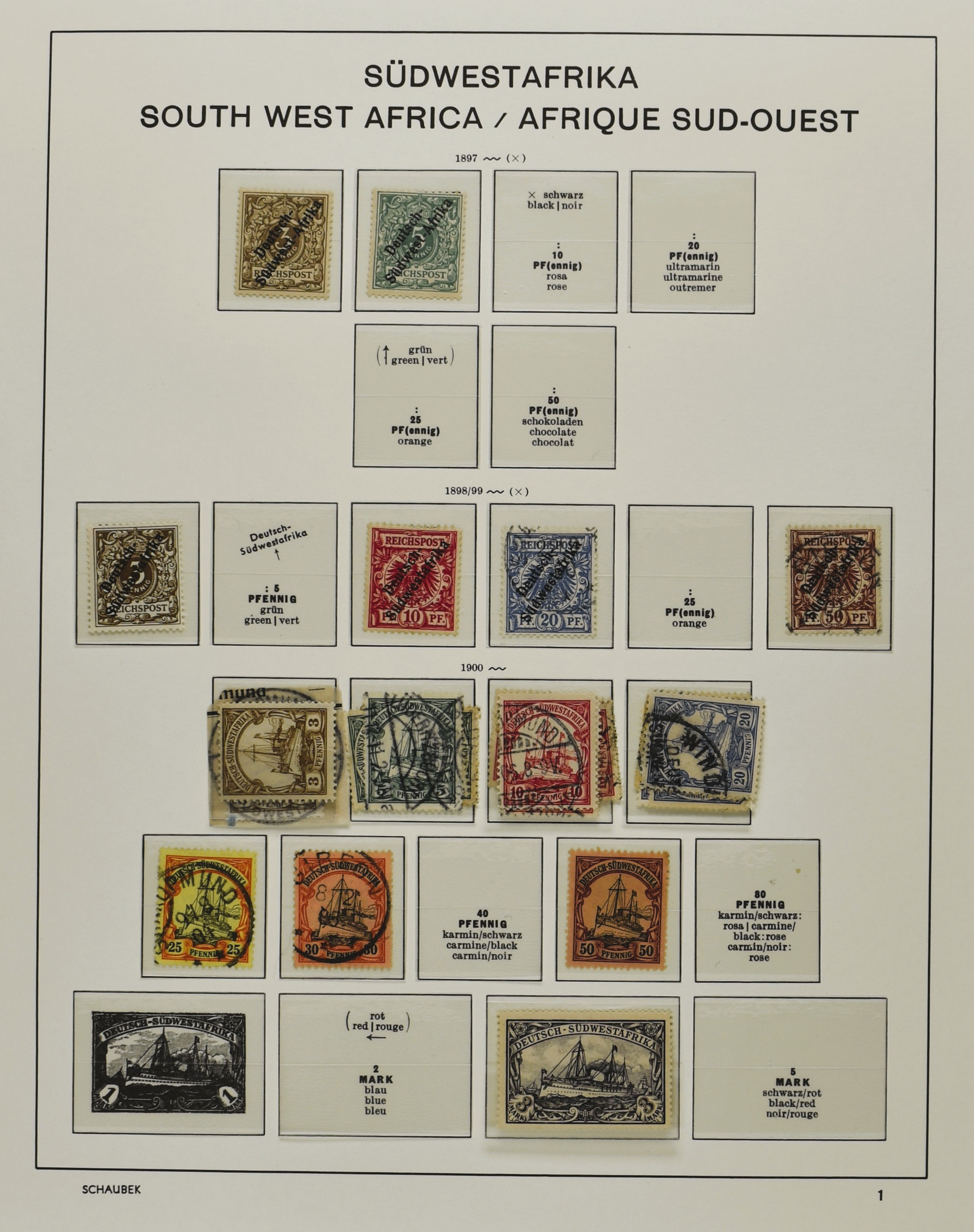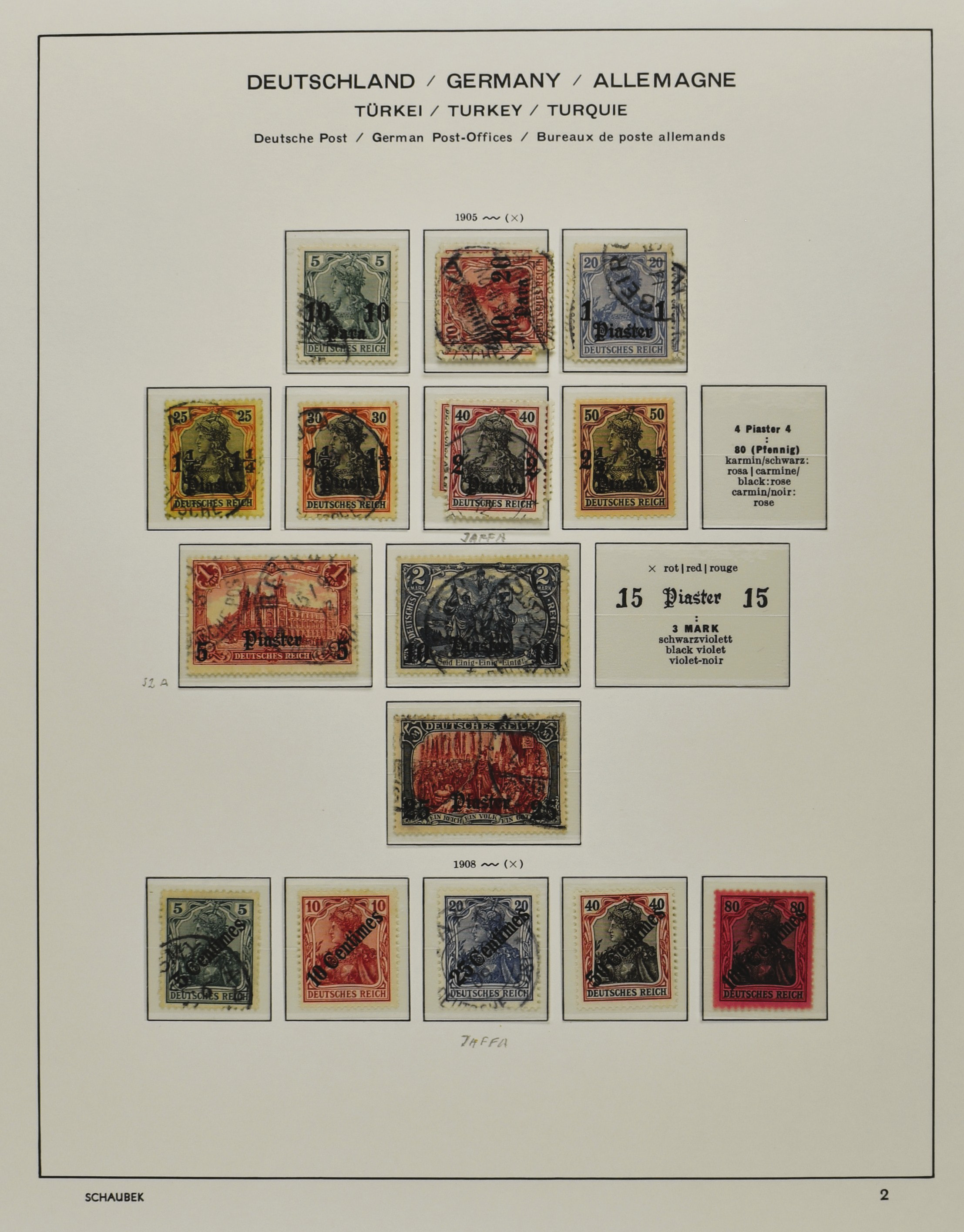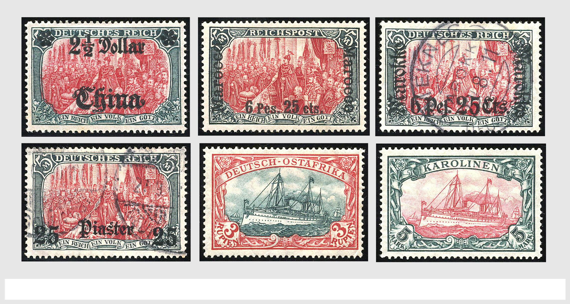 GERMAN P.O. ABROAD AND COLONIES, o/* on albumpages with better numbers i.e.: China 37A, Morocco 19I, 58 used (signed), Turkey 1/5, 47, G.E.A. 5, 11/21, 22/29, SWA 32 A+B, Karolinen 10 and 12 etc. (Image) (Image2)