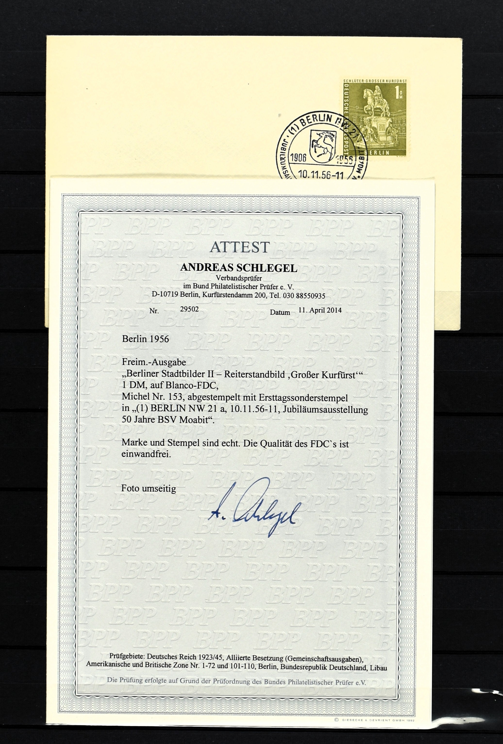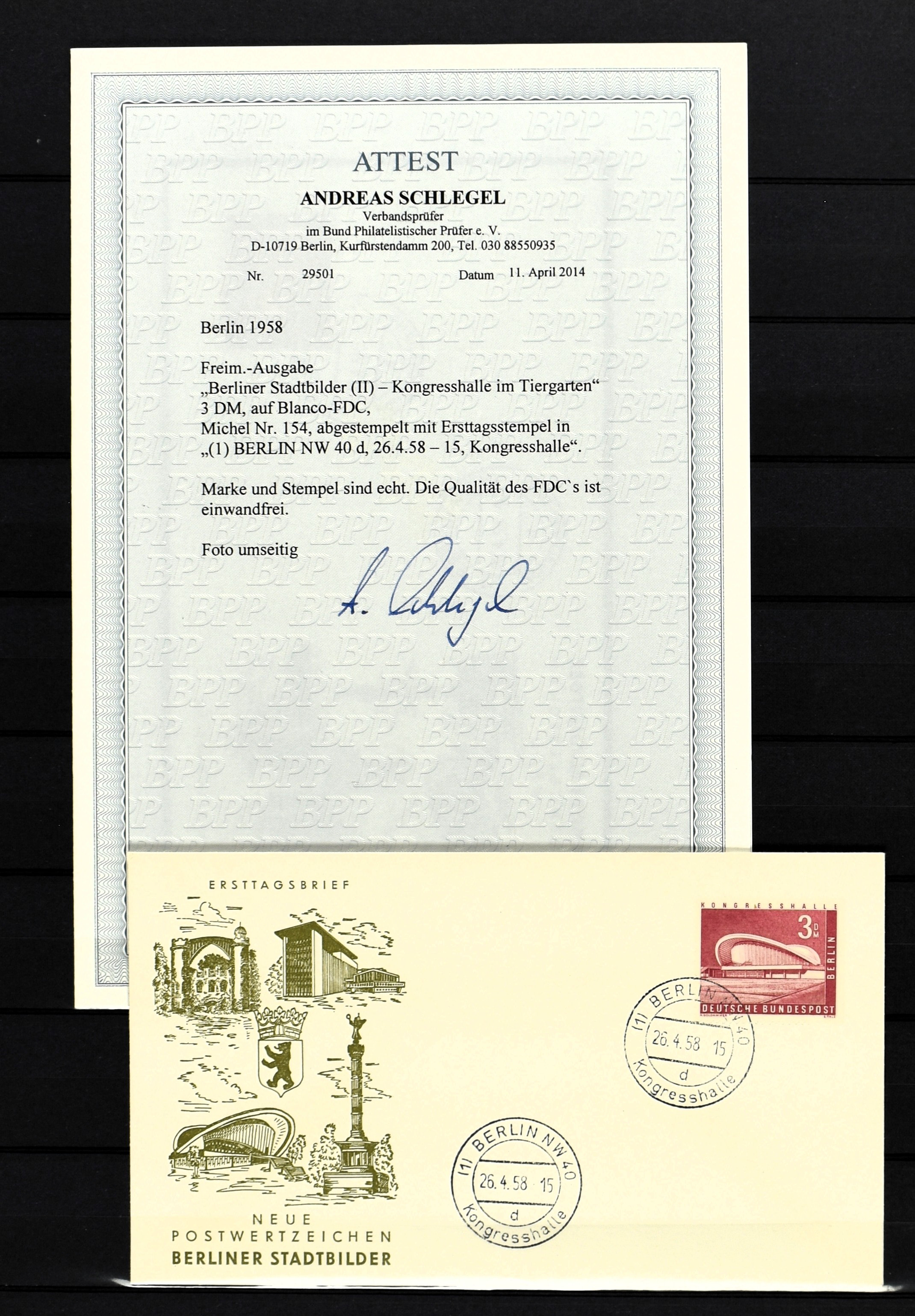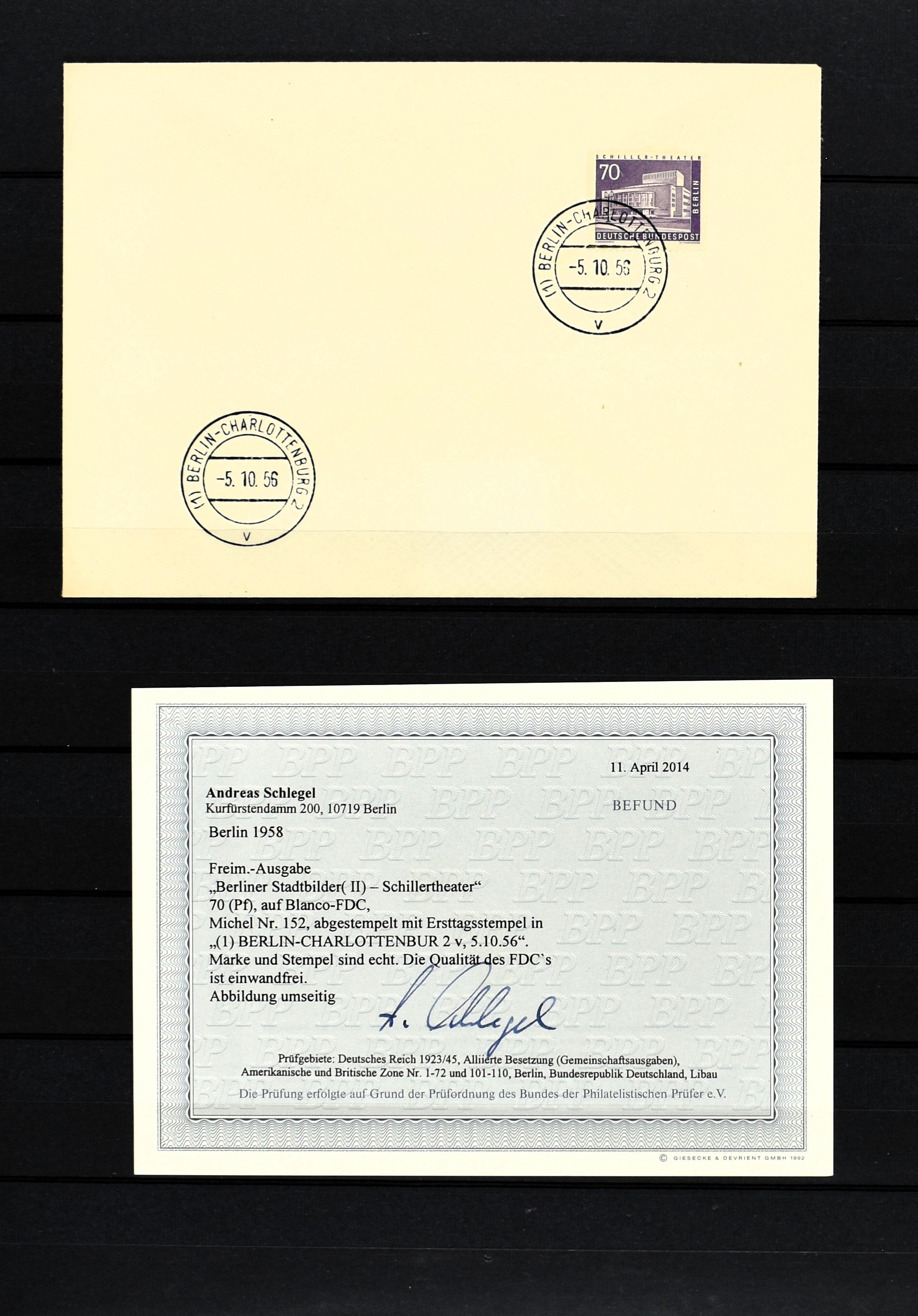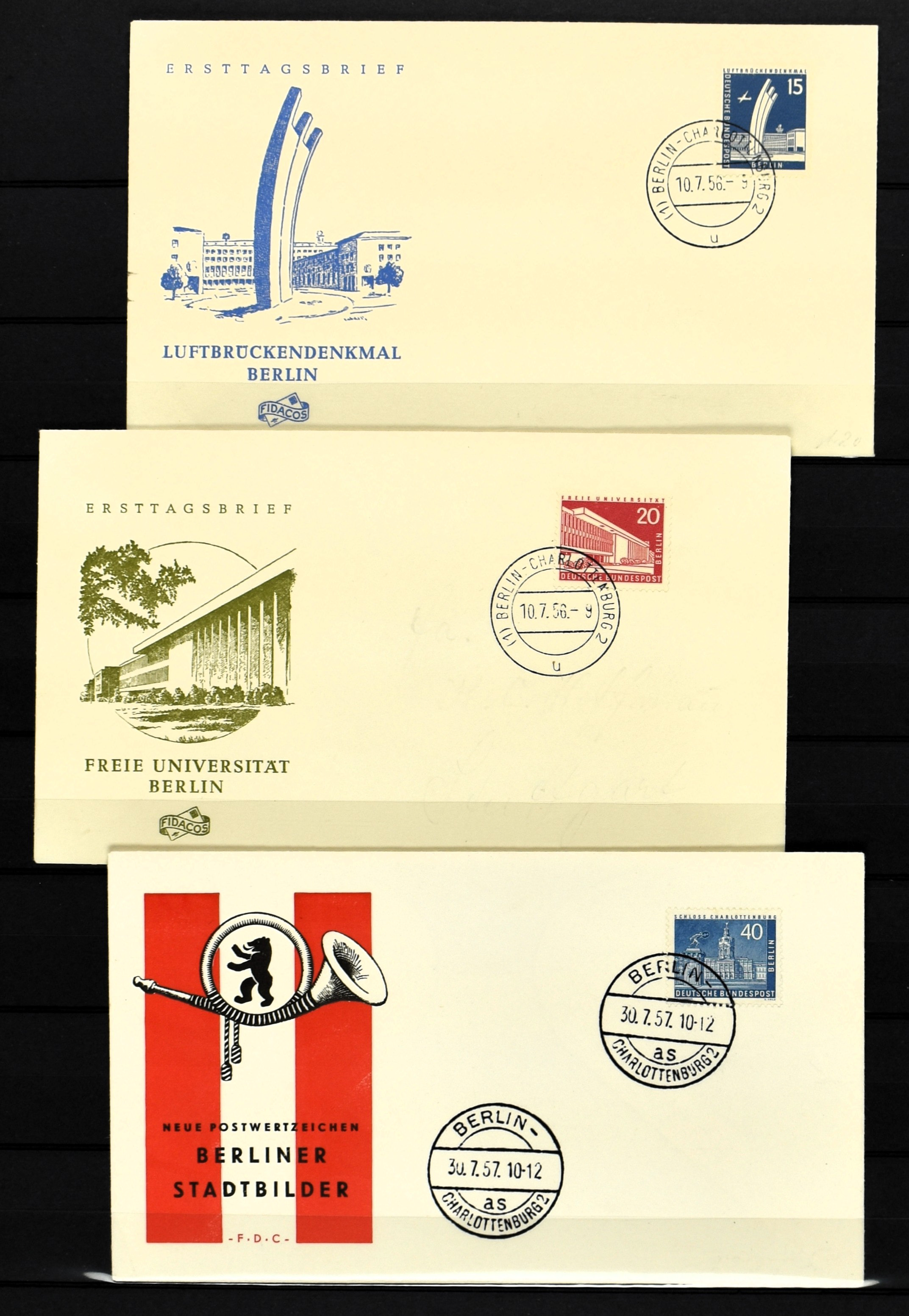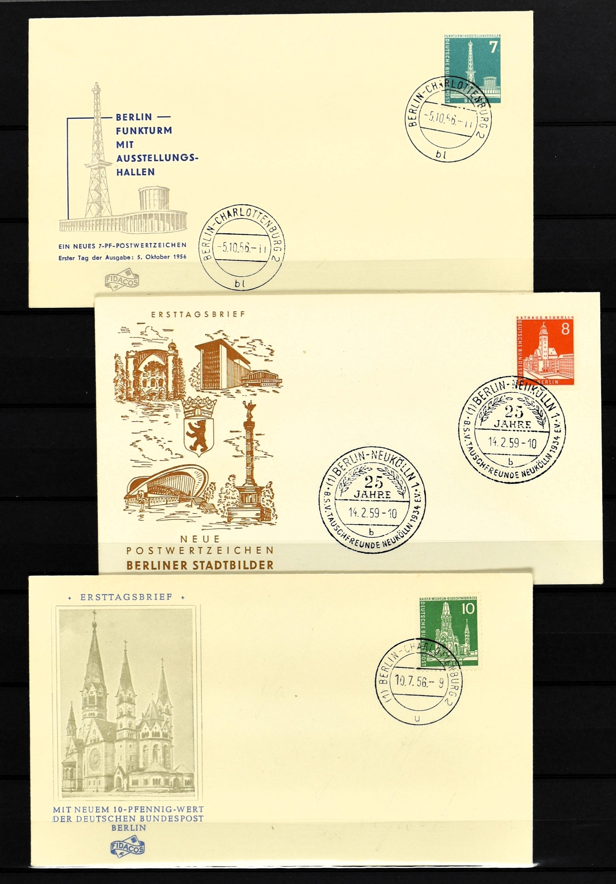 GERMANY, BERLIN, 'Stadtbilder' first day covers, 10 mostly very fine ex. incl. Mi. 152/54 with certificates 'Schlegel' (Image) (Image2)