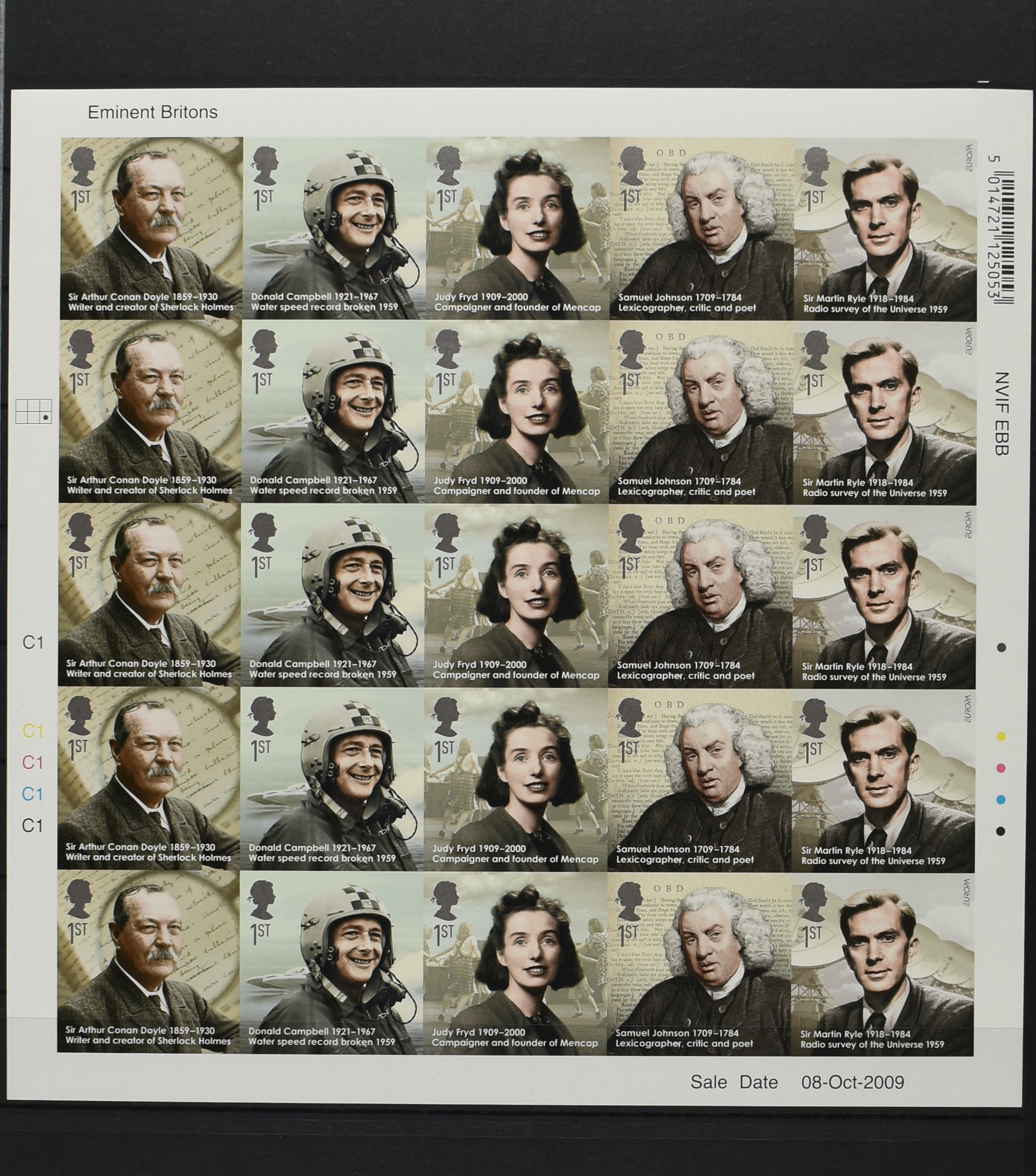 GREAT BRITAIN, SG. 2976/2980 'Eminant Britons', 5 strips of 5 in an imperforated pane of 25, VF unmounted mint (Image) (Image2)