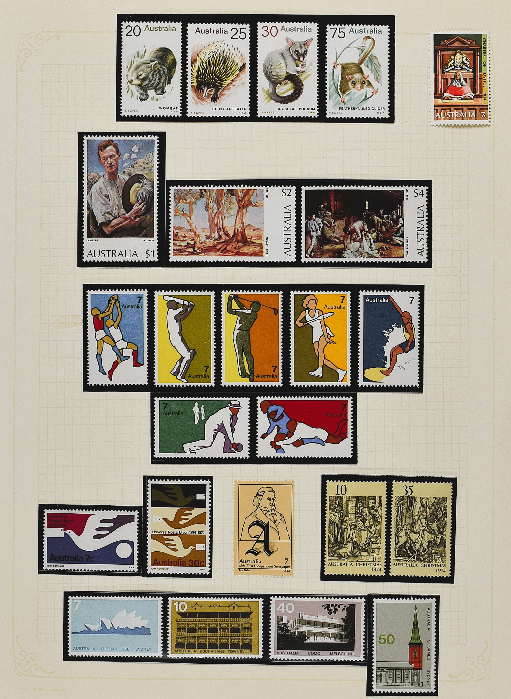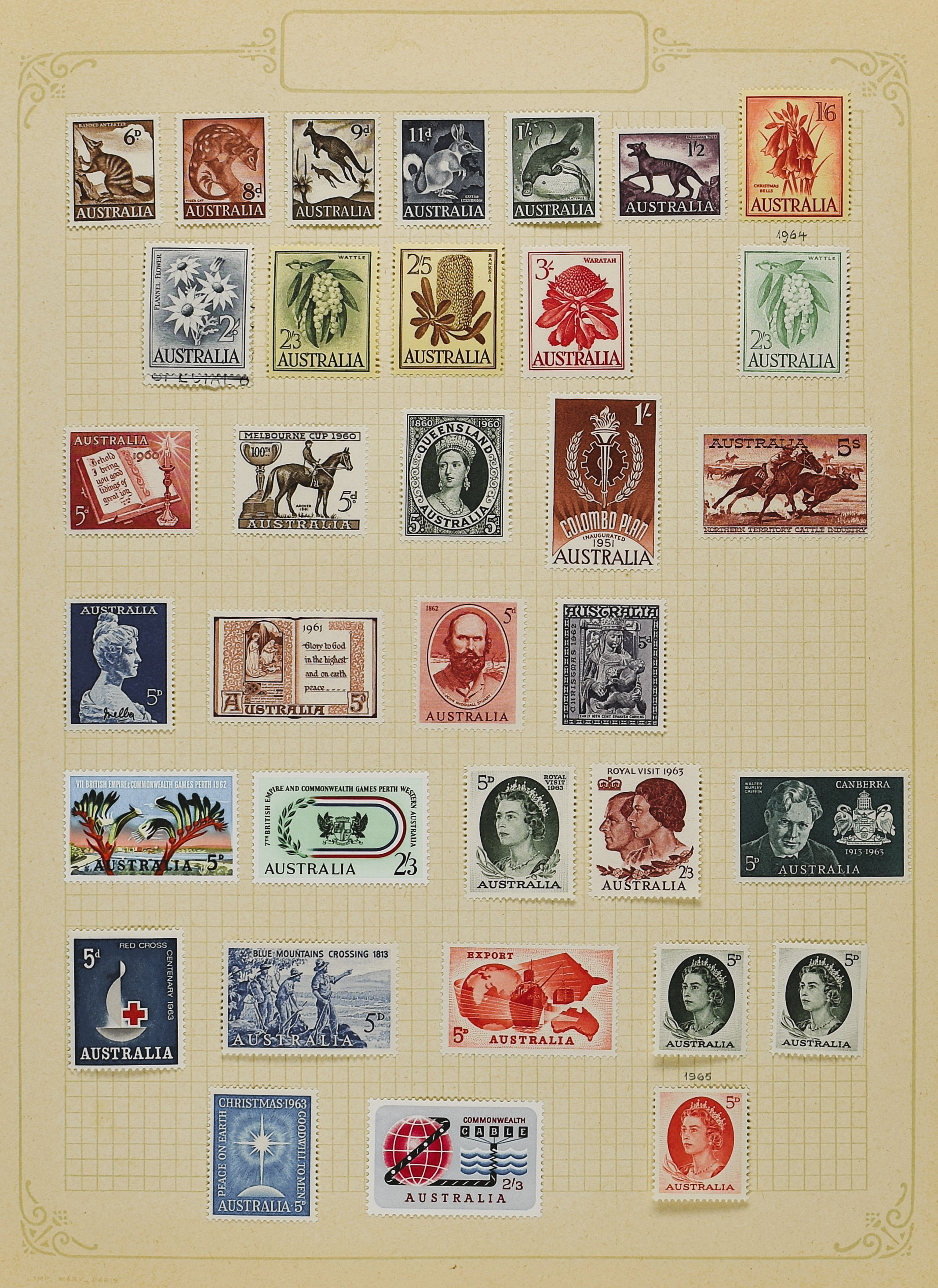 BRITISH COMMONWEALTH, AUSTRALIA 1930-1982, o/*/** on album pages with some better material f.i: SG. 137 and 141/43, AAT with 1/18, and som Christmas Island. also a small part States, in overall nice quality. (Image) (Image2)