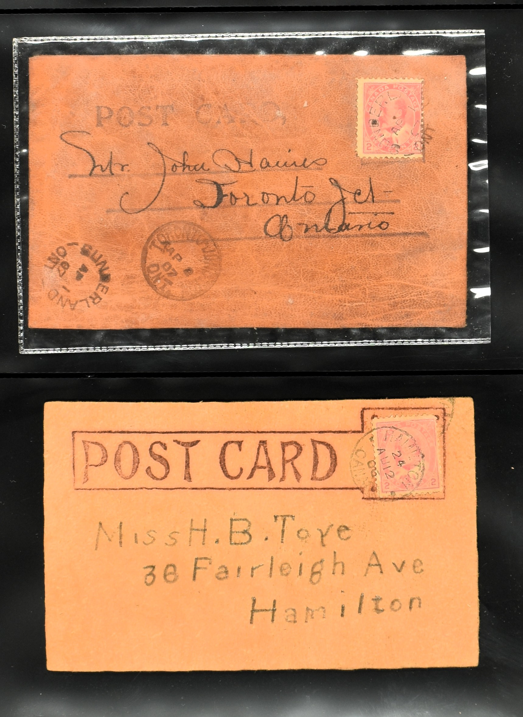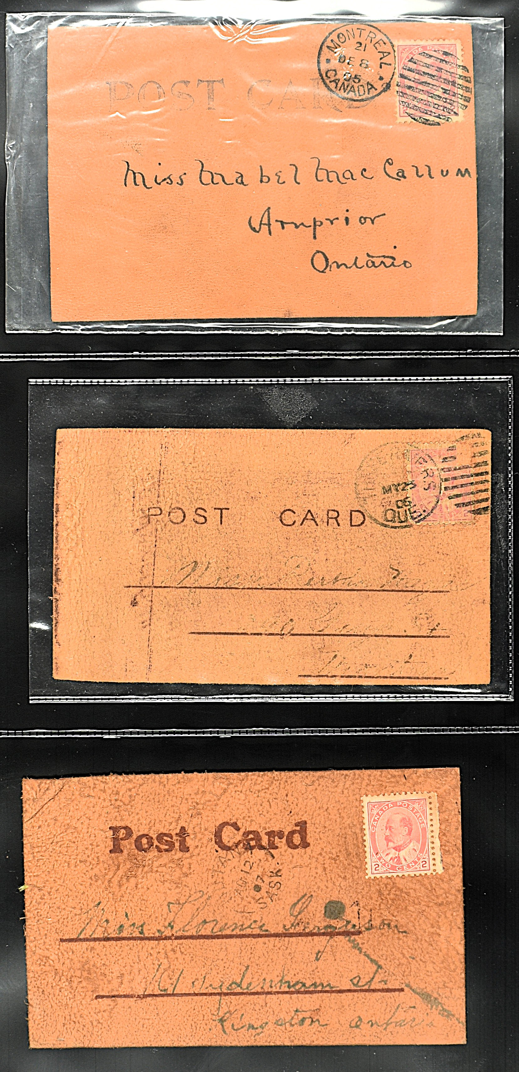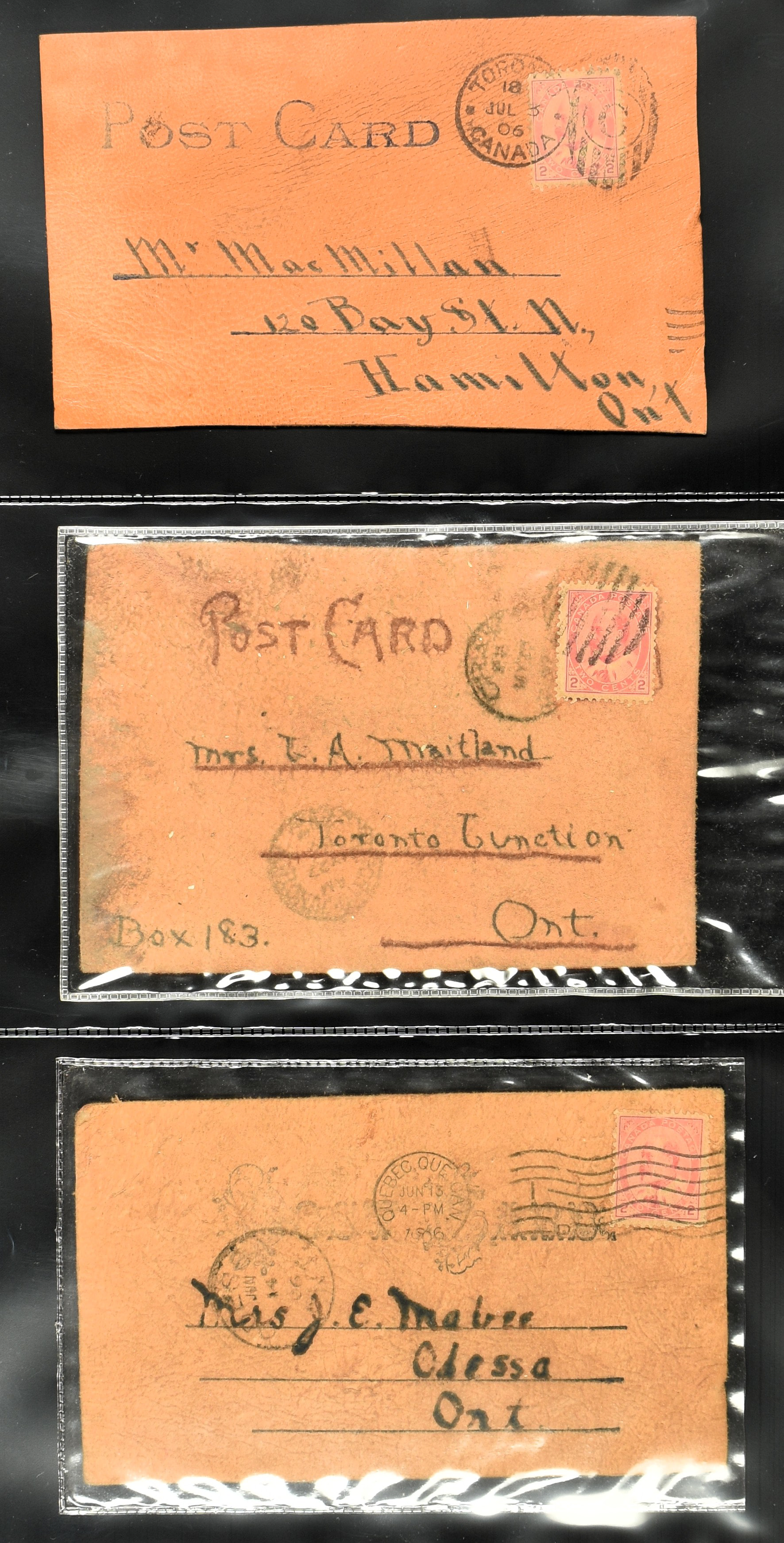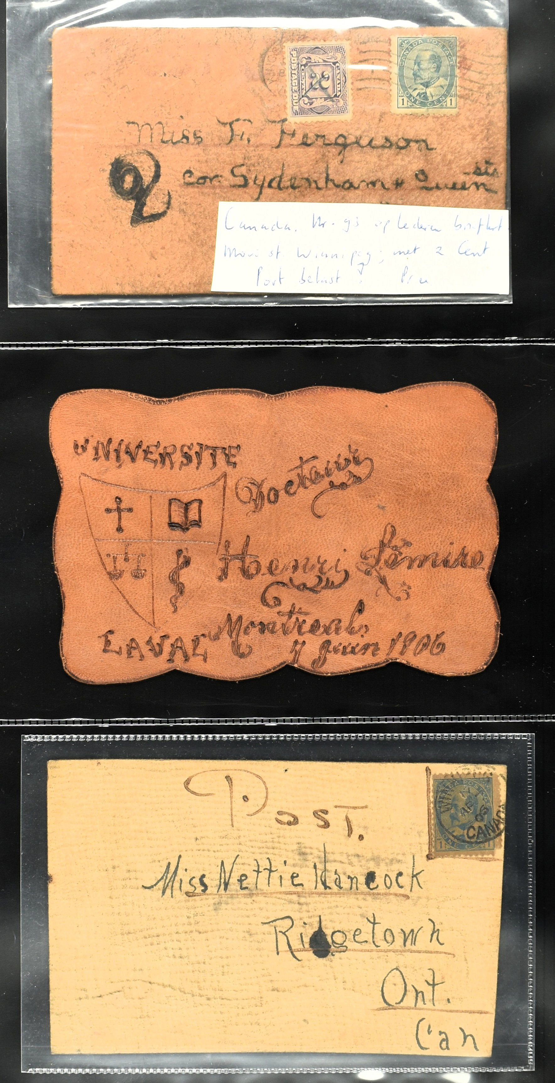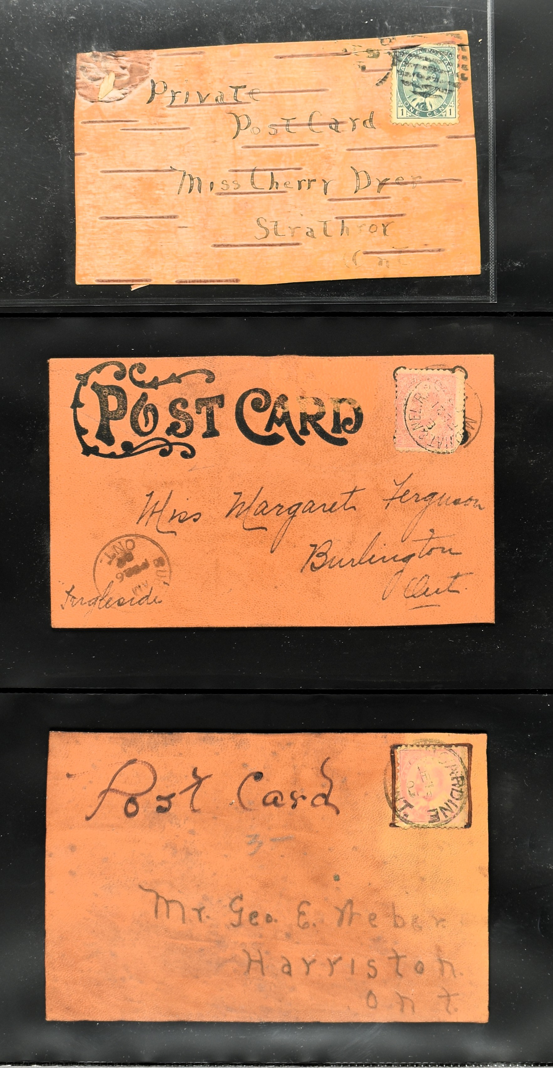 BRITISH COMMONWEALTH, CANADA 1905-1908, 43 leather cards and 4 wooden cards from birch bark. The lot is completely depicted on our website. (Image)