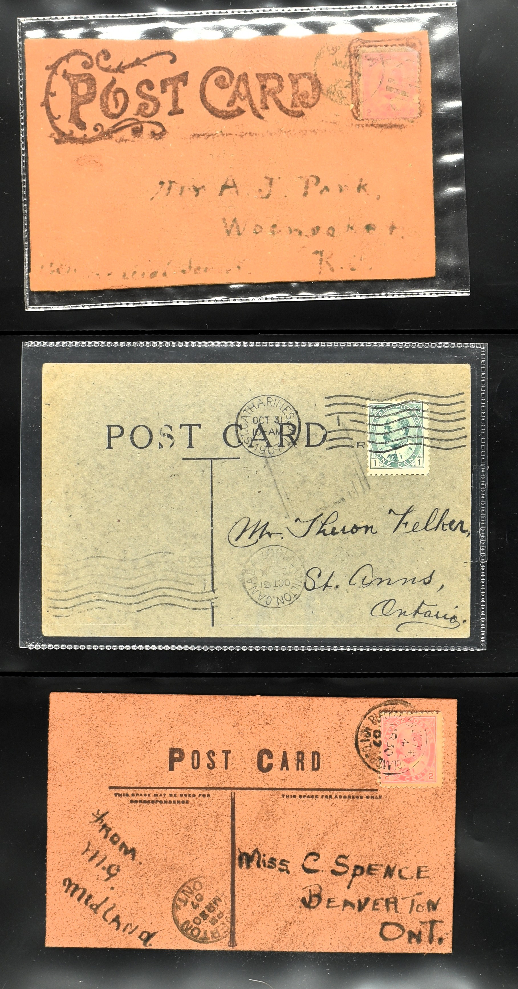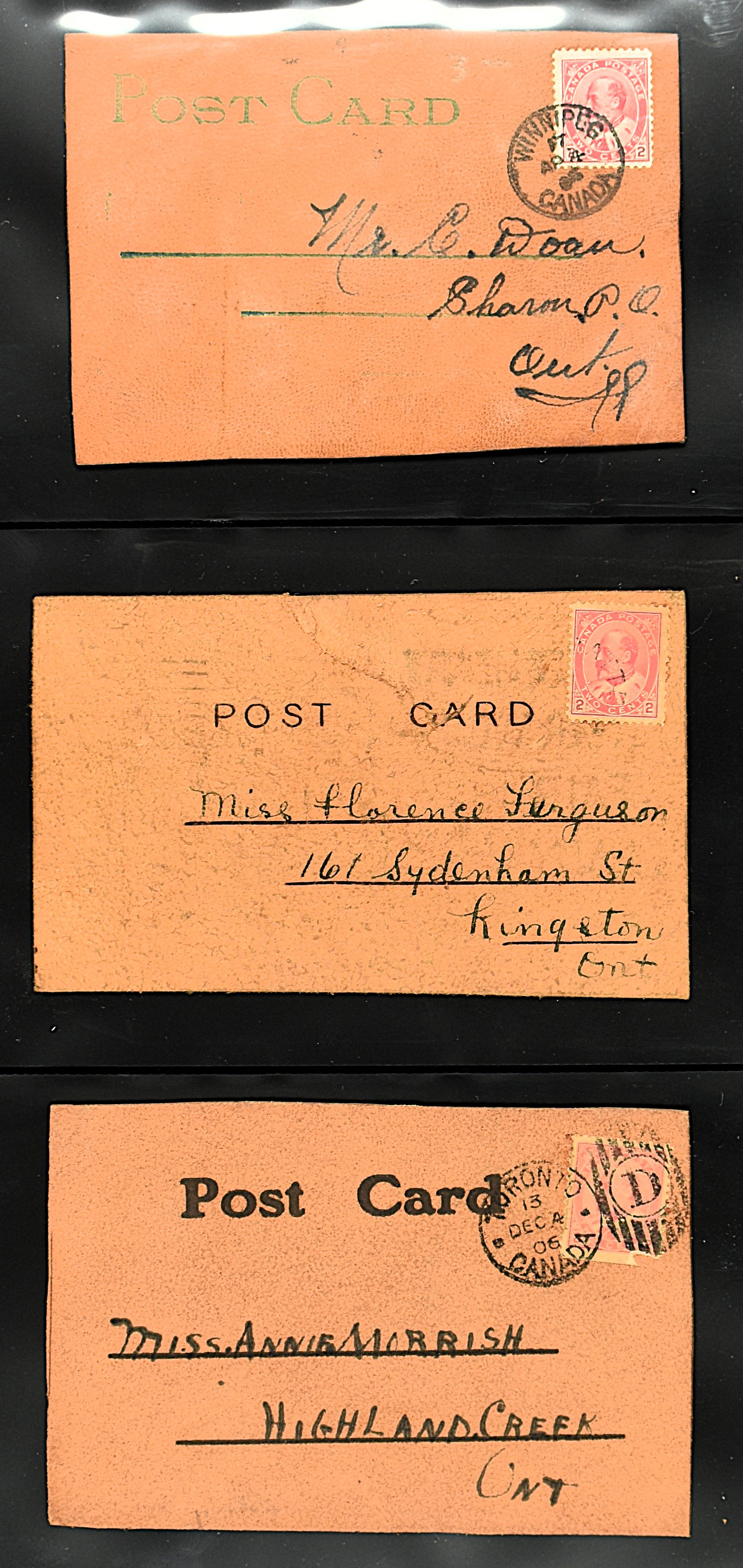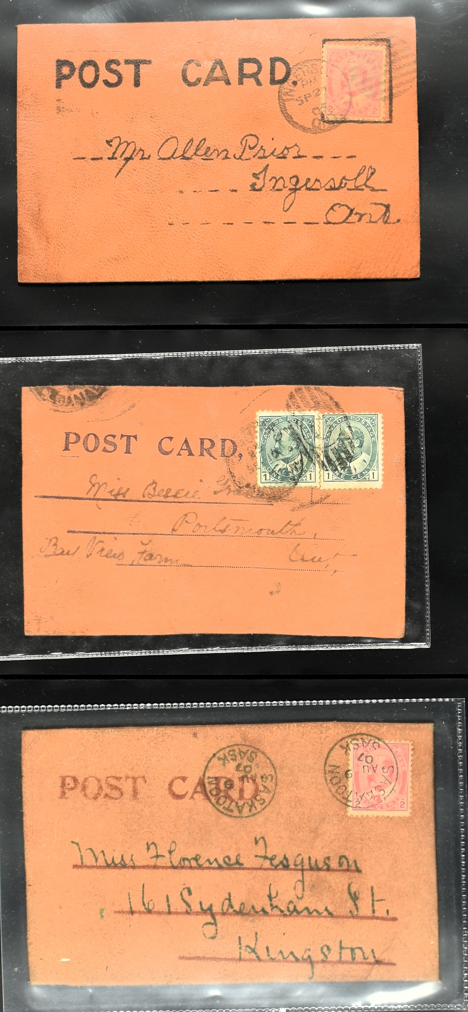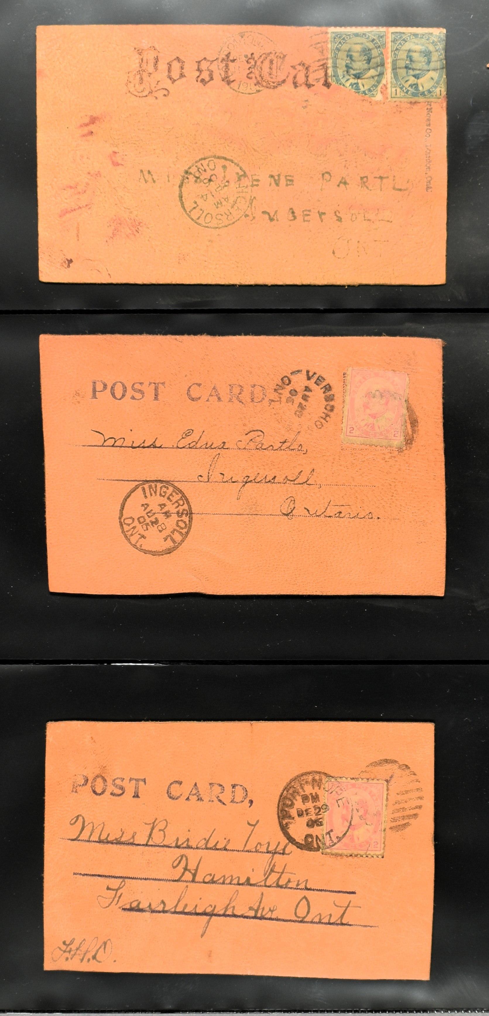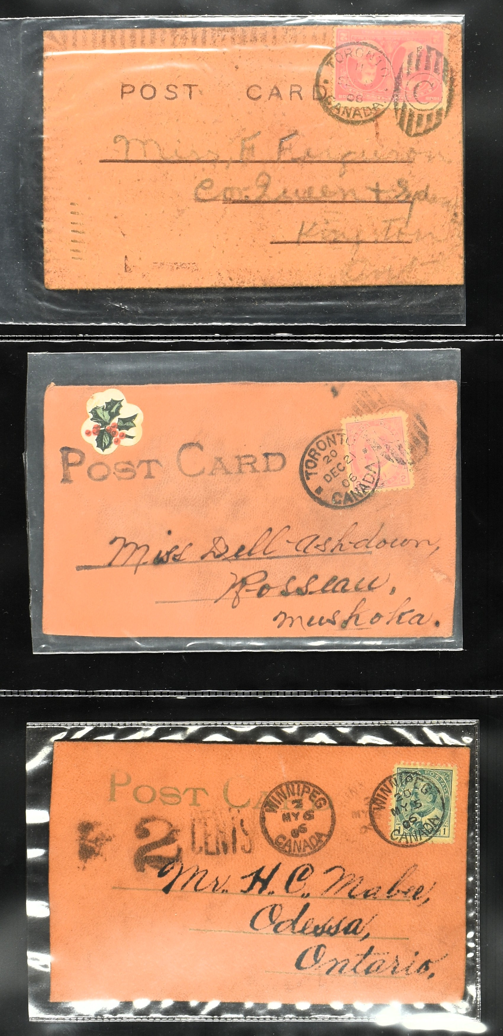 BRITISH COMMONWEALTH, CANADA 1905-1908, 43 leather cards and 4 wooden cards from birch bark. The lot is completely depicted on our website. (Image)