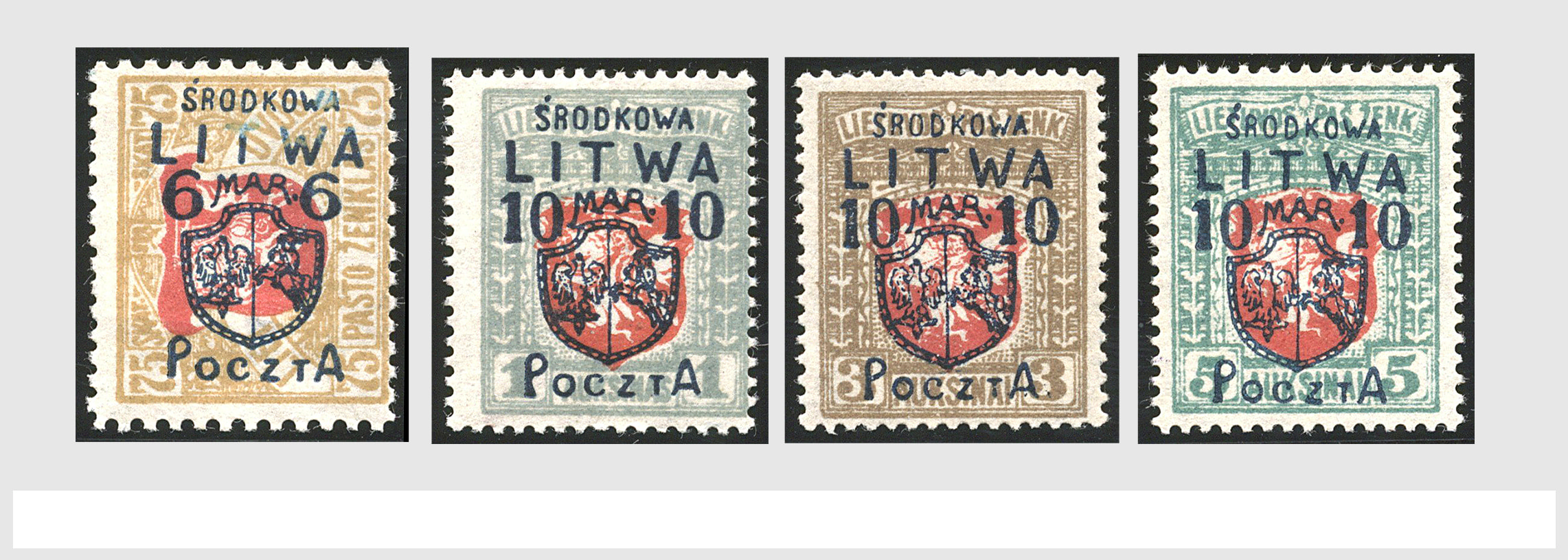 2160 imageLITHUANIA, Central Lithuania Mi. 4/13, the overprinted set cpl. VF unused, the two high values unmounted mint with signs Thier, Romek, Hahne BPP and Mikulski. An extremely rare set! Cat value €7000 (Image) (Image2) (All Images)