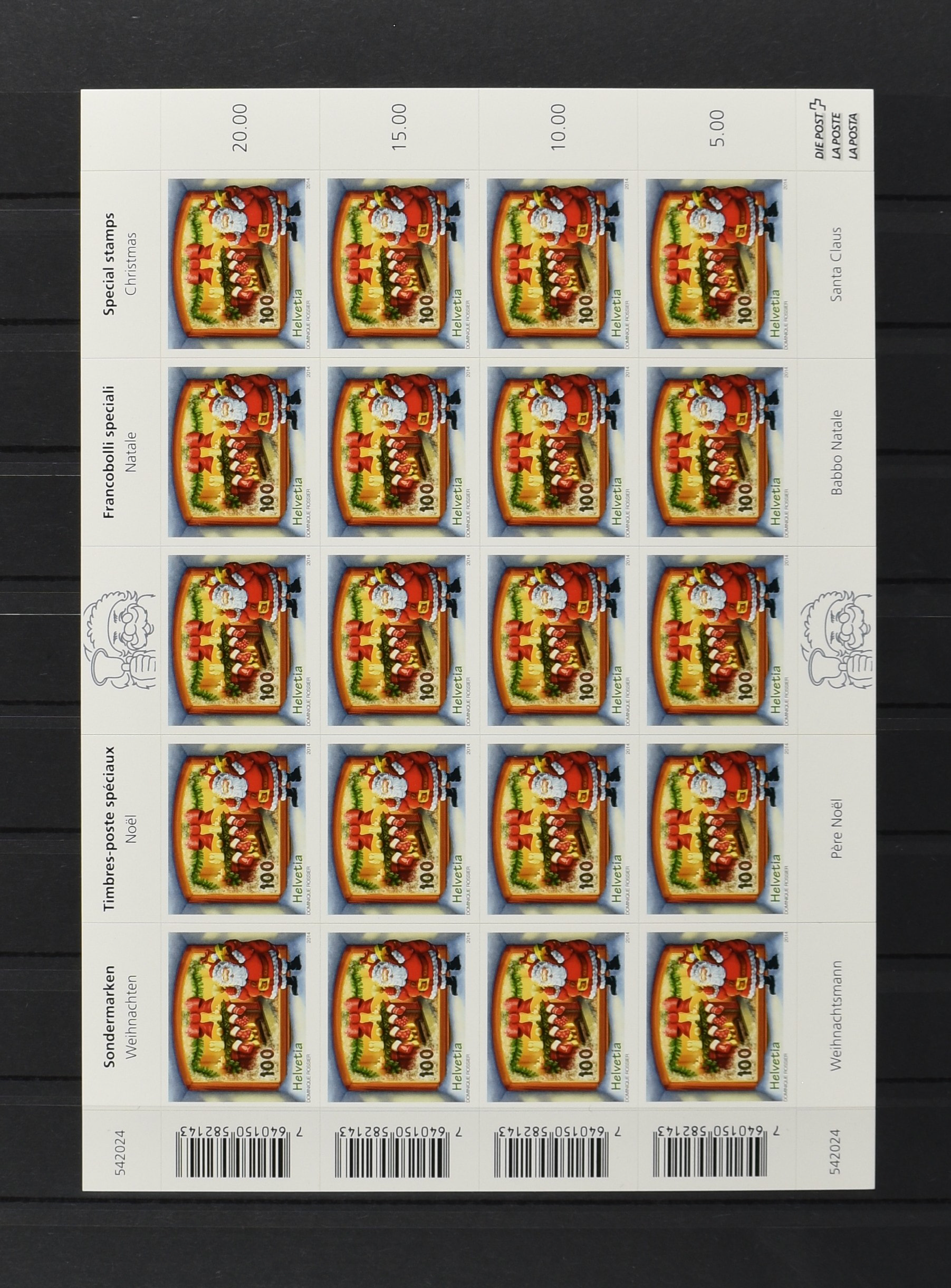 2172 imageSWITZERLAND, Mi. 2367, 100 (c) Christmas 2014 in a complete miniature sheet completely misperforated, VF unmounted mint (Image) (Image2) (All Images)
