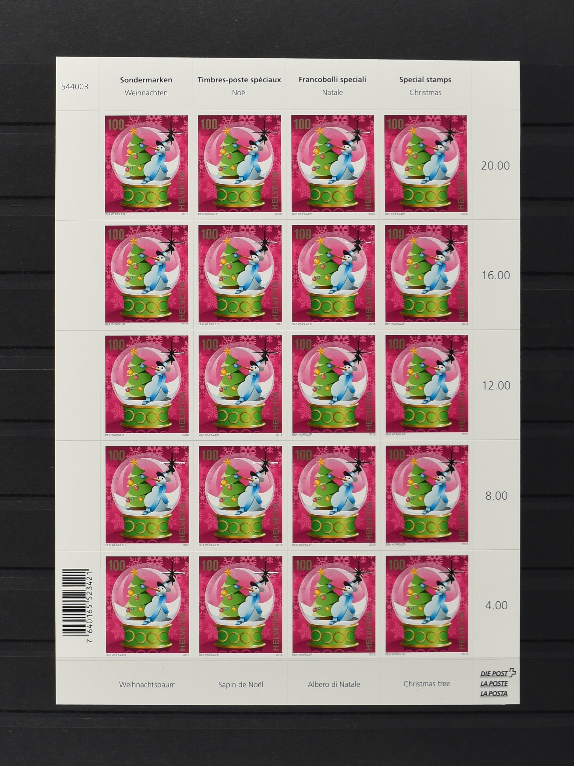 2173 imageSWITZERLAND, Mi. 2419, 100 (c) Christmas 2015 in a complete imperforated miniature sheet, VF unmounted mint (Image) (Image2) (All Images)