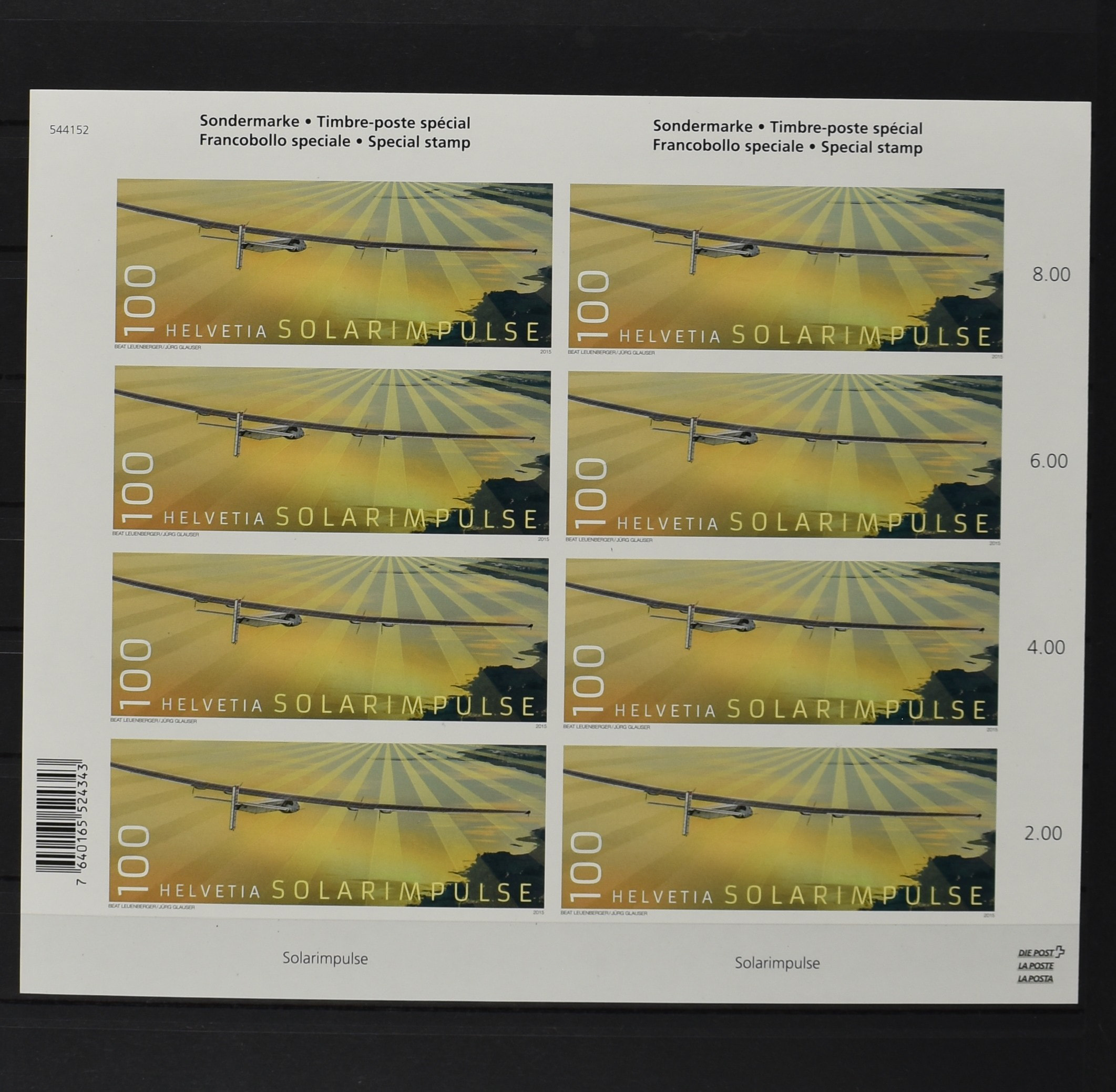 2174 imageSWITZERLAND, Mi. 2454, 'Solarimpulse' in cpl. imperforated miniature sheet, VF unmounted mint (Image) (Image2) (All Images)