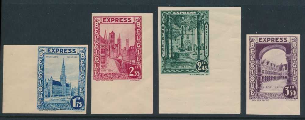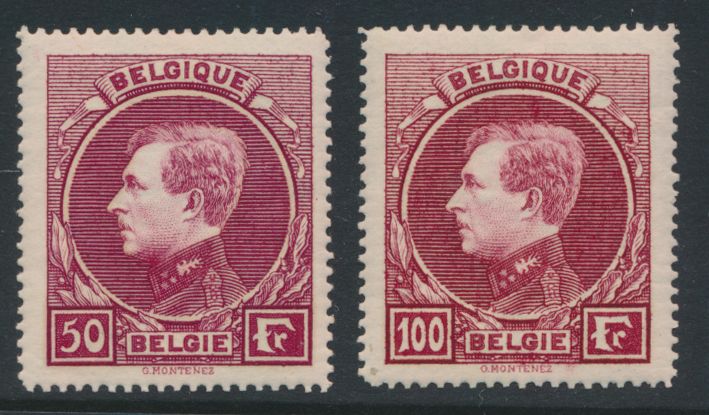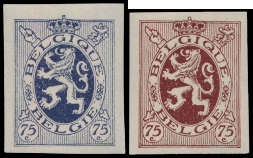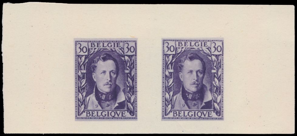2049 imageAlbert I, "30c. violet" in pair on plain white paper, proposal by an unknown author (+/-1928) by "Orell Fussli" in Zurich, large image, this colour is not listed in STES, vf(Image 1) (All Images)