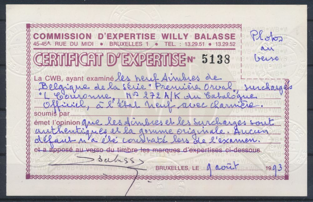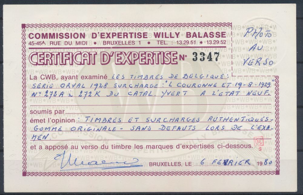 2043 og imageN° 272A/K "Full set" with photo certificate, vf (OBP €850)(Image 1) (Image 2) (Image 3)