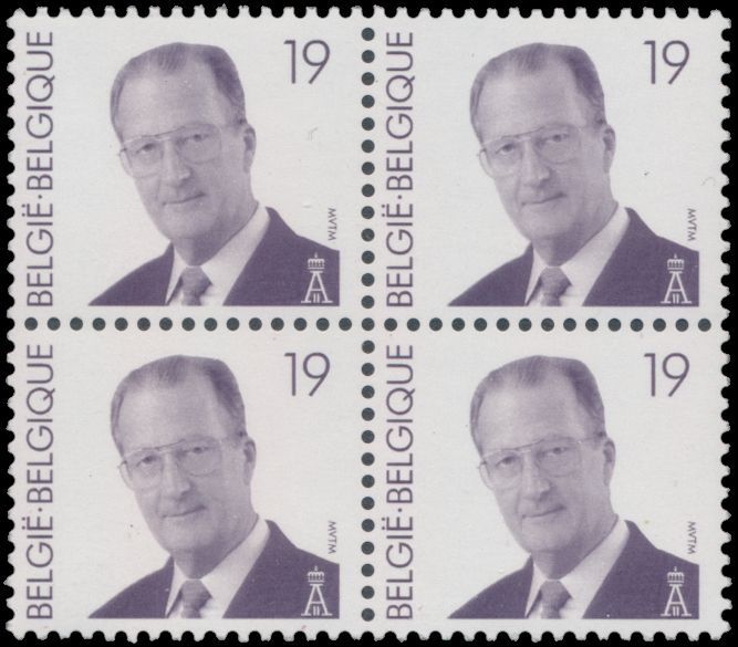 2246 nh imageN° 2779a 'Albert II, 19 F violet roll stamp' (Block of four) (from sheets of 60) rare, vf (OBP €1,170)(Image 1) (All Images)