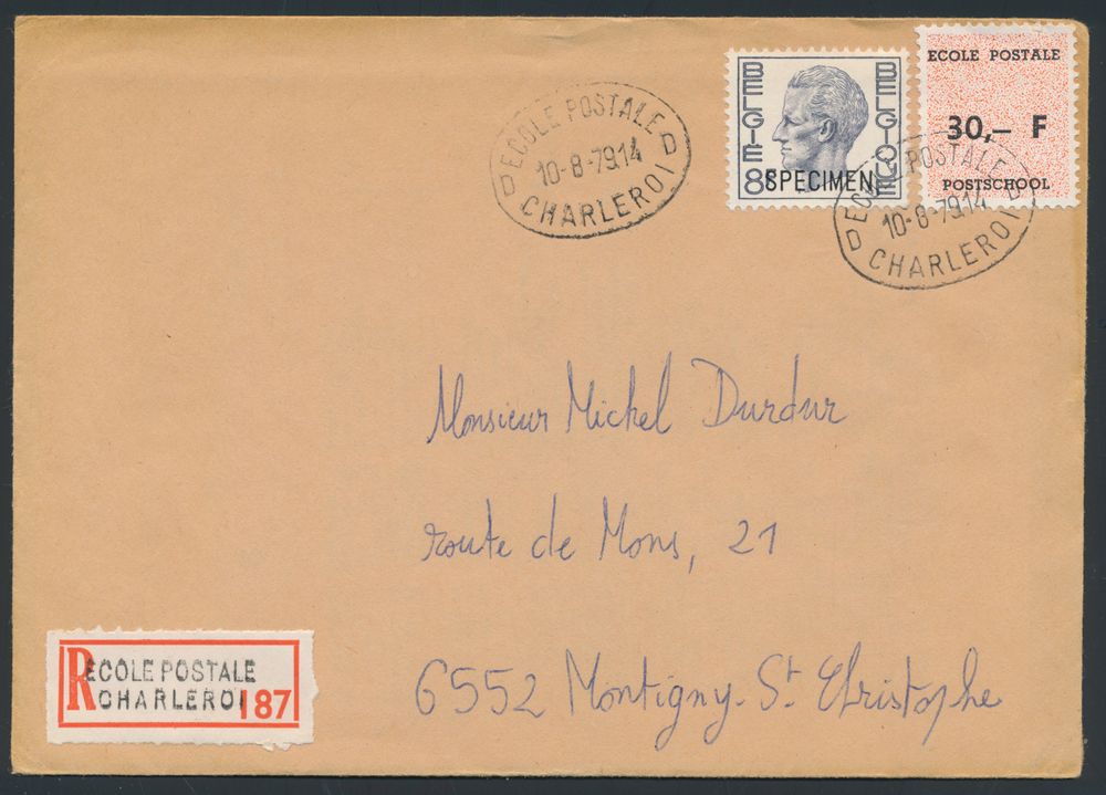 2241 imageN° 1647 "8F. grey", SPECIMEN on letter "Ecole postale" / "Postal School" 30.-F Charleroi - Montigny-St-Christophe, vf/to be checked(Image 1) (Image 2)