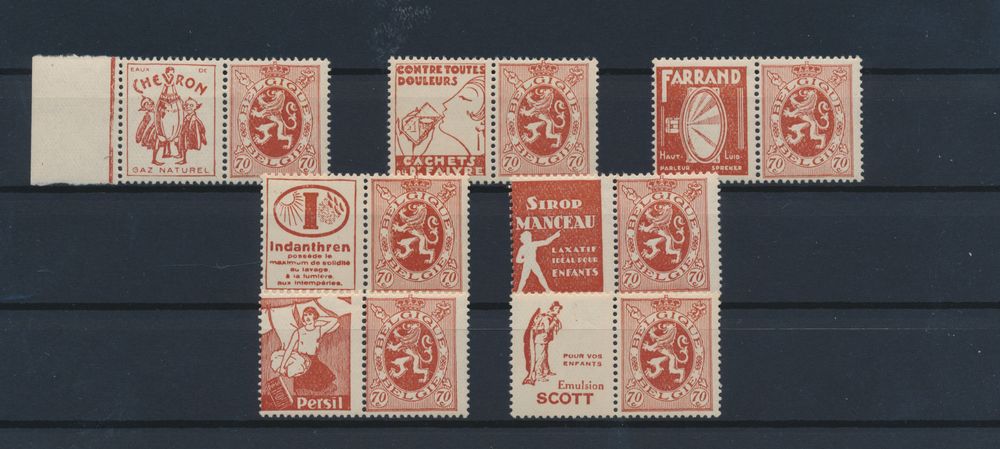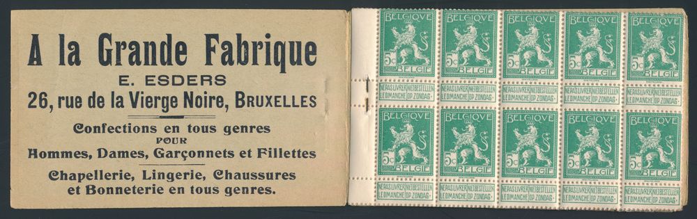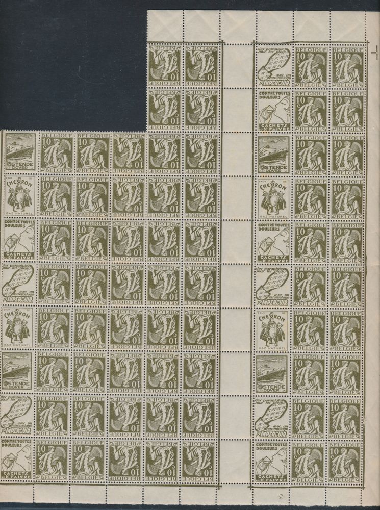 2443 nh imageA11, 1914, without publicity, 4 times 5 stamps 5 centimes (N°110) and 2 times 5 stamps 10 centimes (N°123), vf (OBP €265)(Image 1) (All Images)