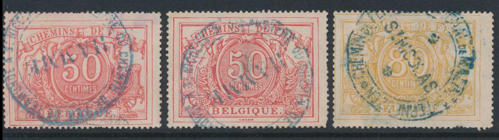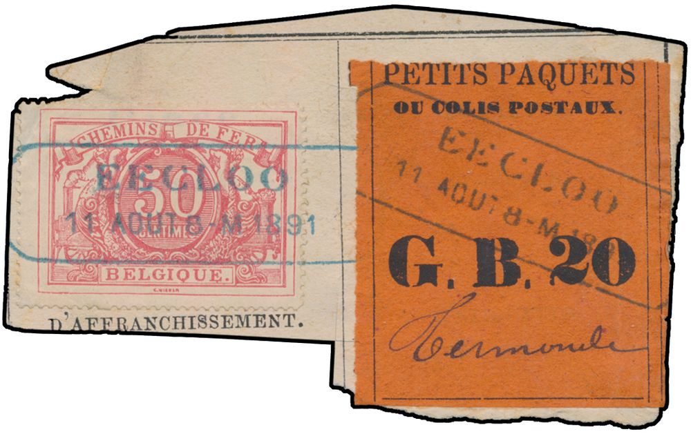 2500 0 imageTR 11 (3x) and TR 12 (1x) with various better cancellations, especially N° 11 on fragment together with vignette "Petits Paquets G.B. 20", Eecloo 1891, vf(Image 1) (Image 2)