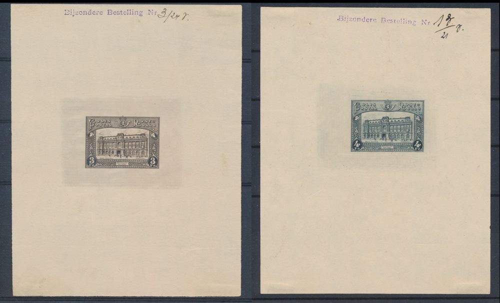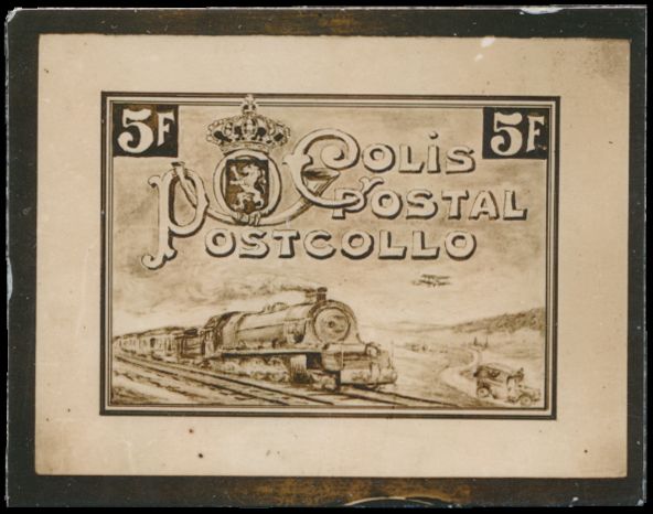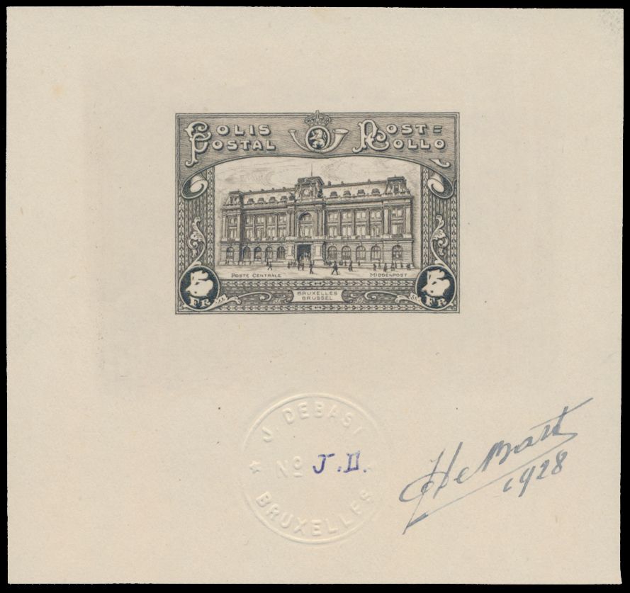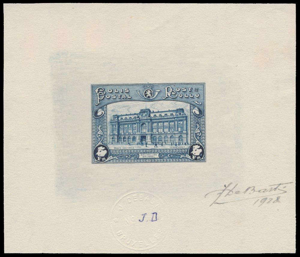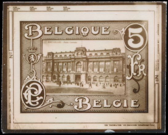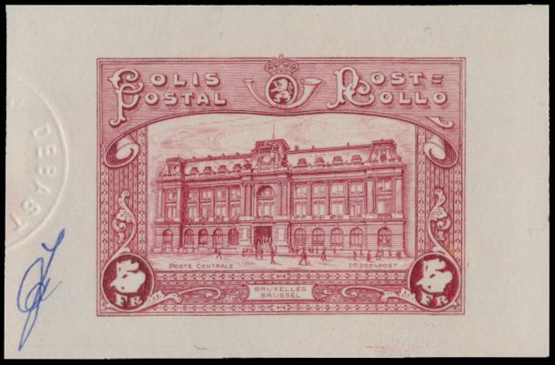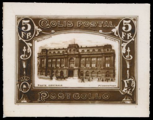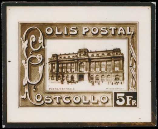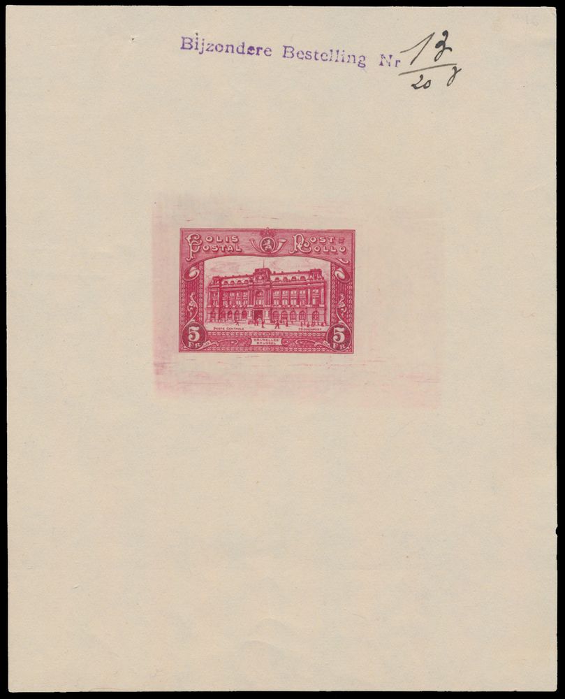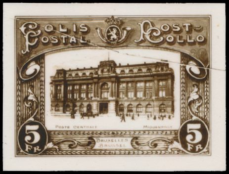 2490 imageStes 221 "5 F. Sepia/Brown, Hotel des postes", on thick white photographic paper, top Belgique and bottom Belgium and 5F top right" Index-2, vf.(Image 1) (All Images)