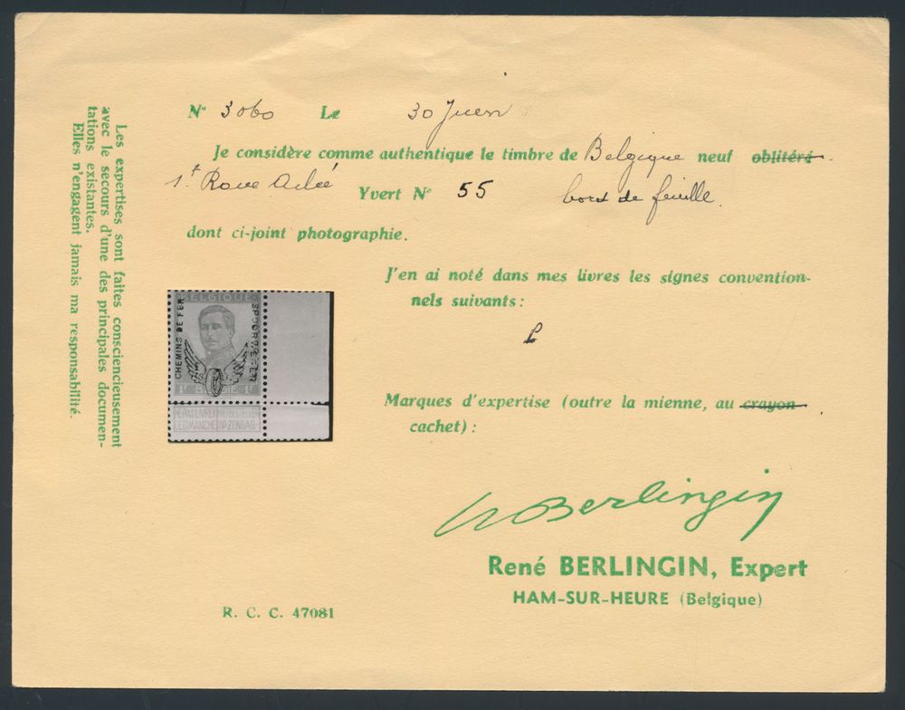 TR 55 '1 Fr orange, winged wheel' with photo certificate,