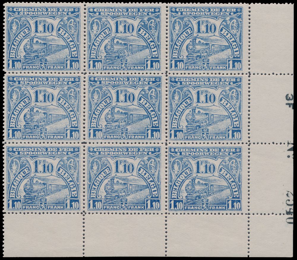 TR 92-Cu "1.10fr. ultramarine", in souvenir sheet of 9 with