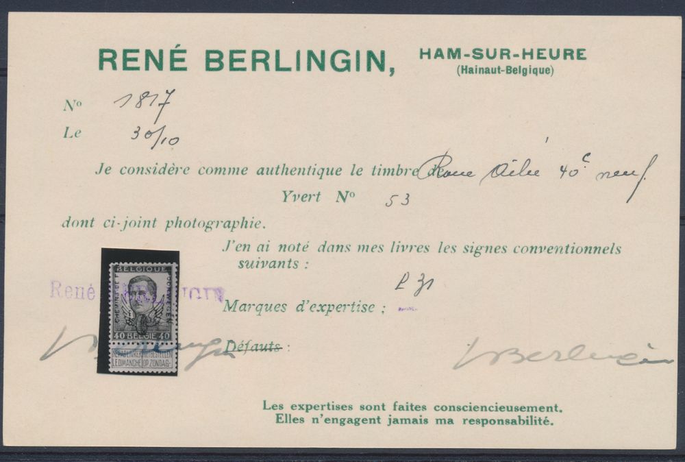 right and extended lower margin, curiosity "shifted perfs to the right", margin inscription "3 F N° 2540", vf (OBP €2475)(Image 1)