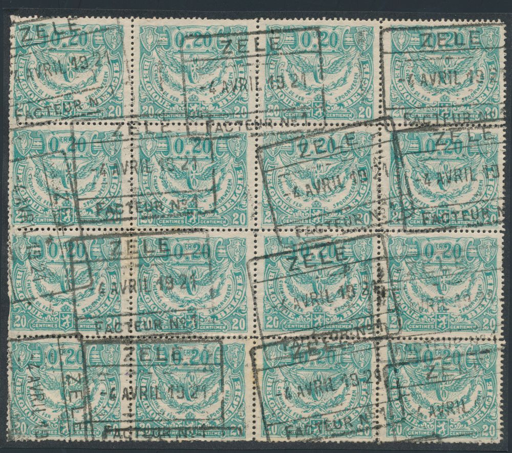 TR 102a "20c blue-green" (block of 16) afst. Zele-Facteur