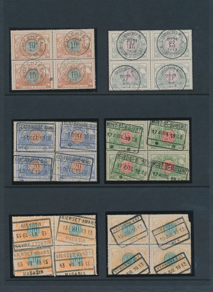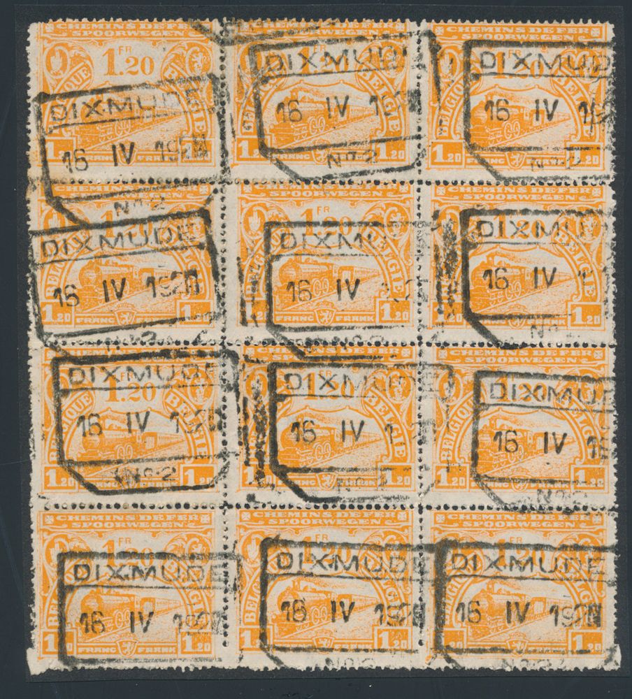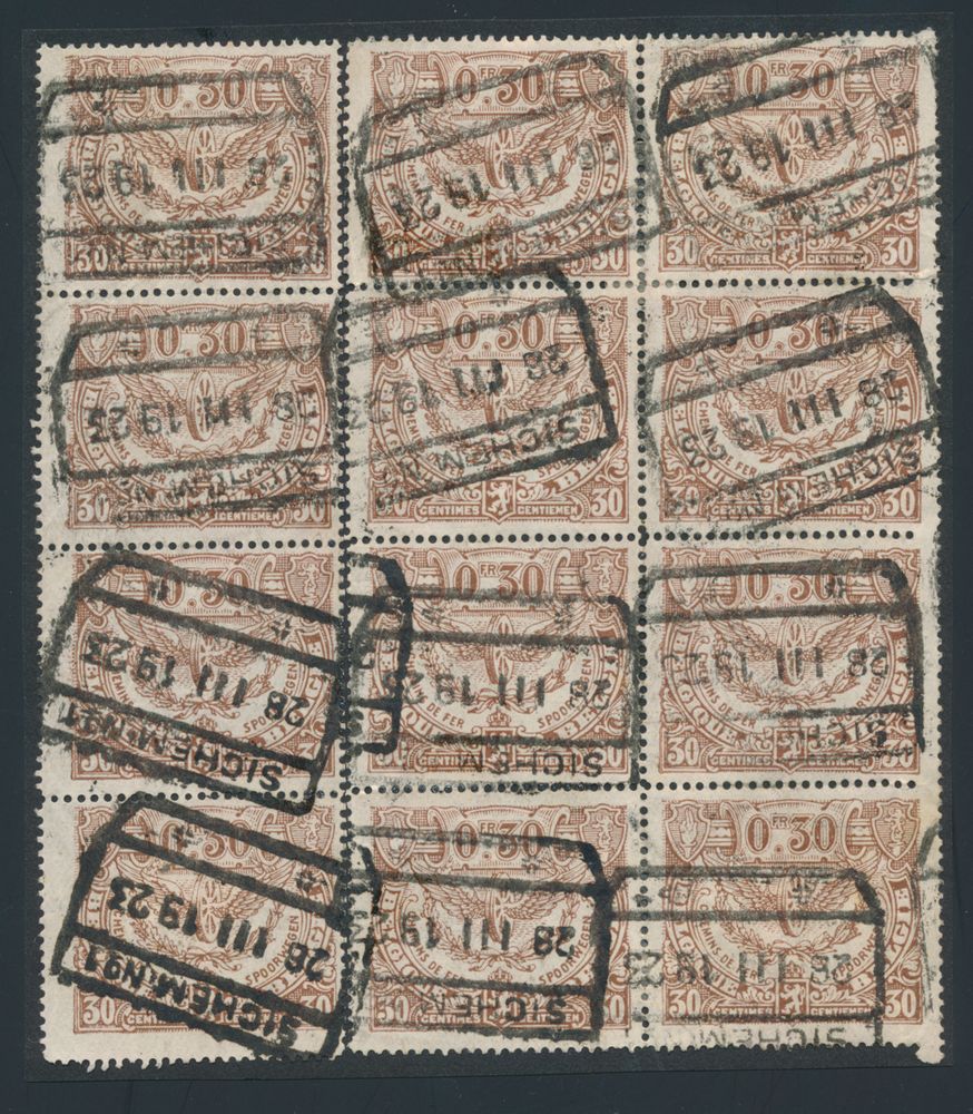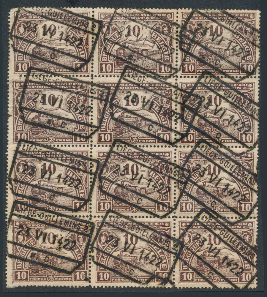 TR 125, "10F Dark Brown" (Bllok of 12), af. Liege-Guillemins,