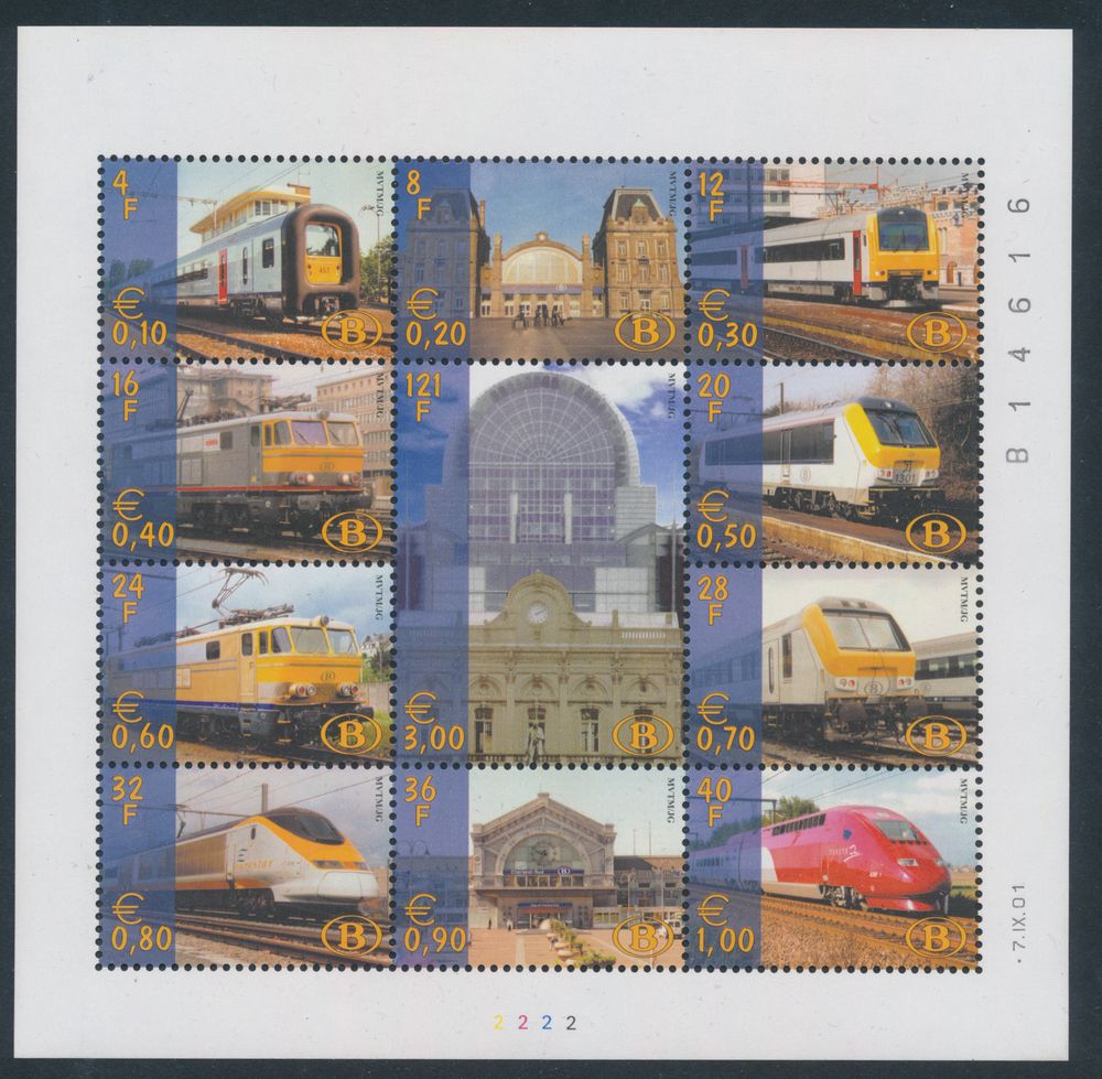 TR 58, "10c blue green" (souvenir sheet of 12) with railway