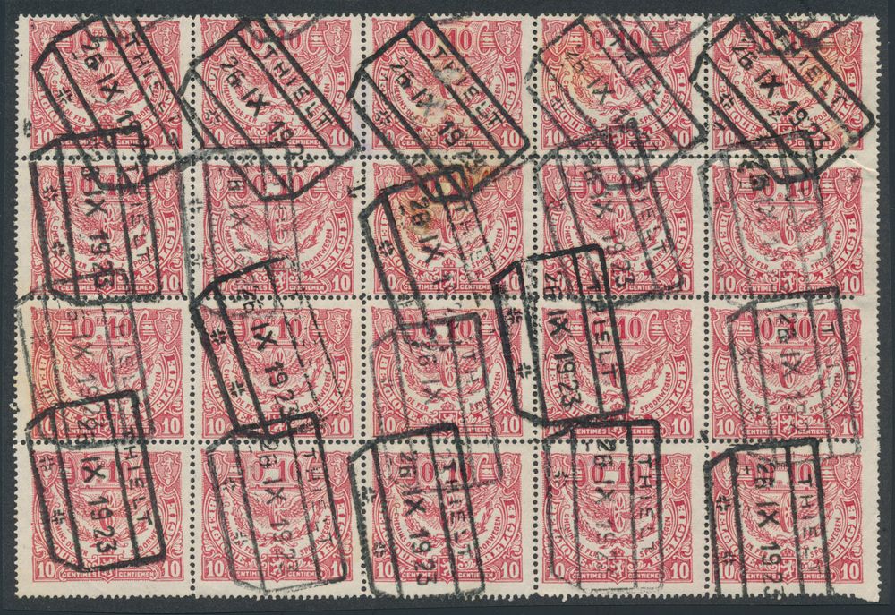 TR 100 "10c carmine" (souvenir sheet of 20), Dep. Thielt, dd.