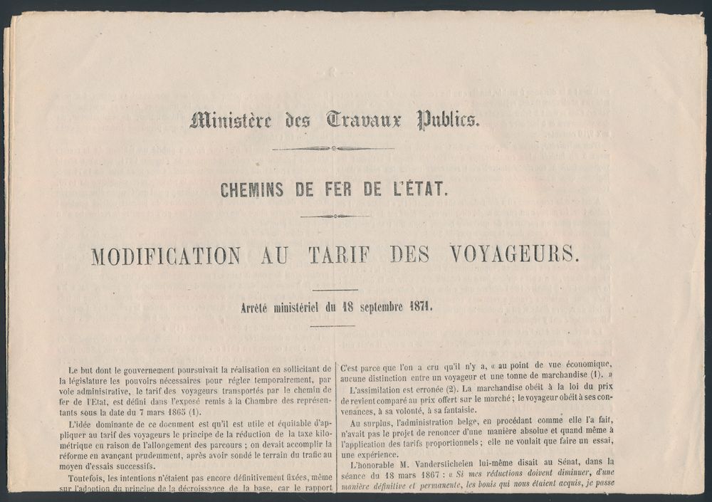 2594 image1871 Ministère des travaux publics - Chemins de Fer de l'état - Modification of passenger tariffs ( Ministerial Decree of 18 September 1871 ), 7-page document, vf.(Image 1) (All Images)