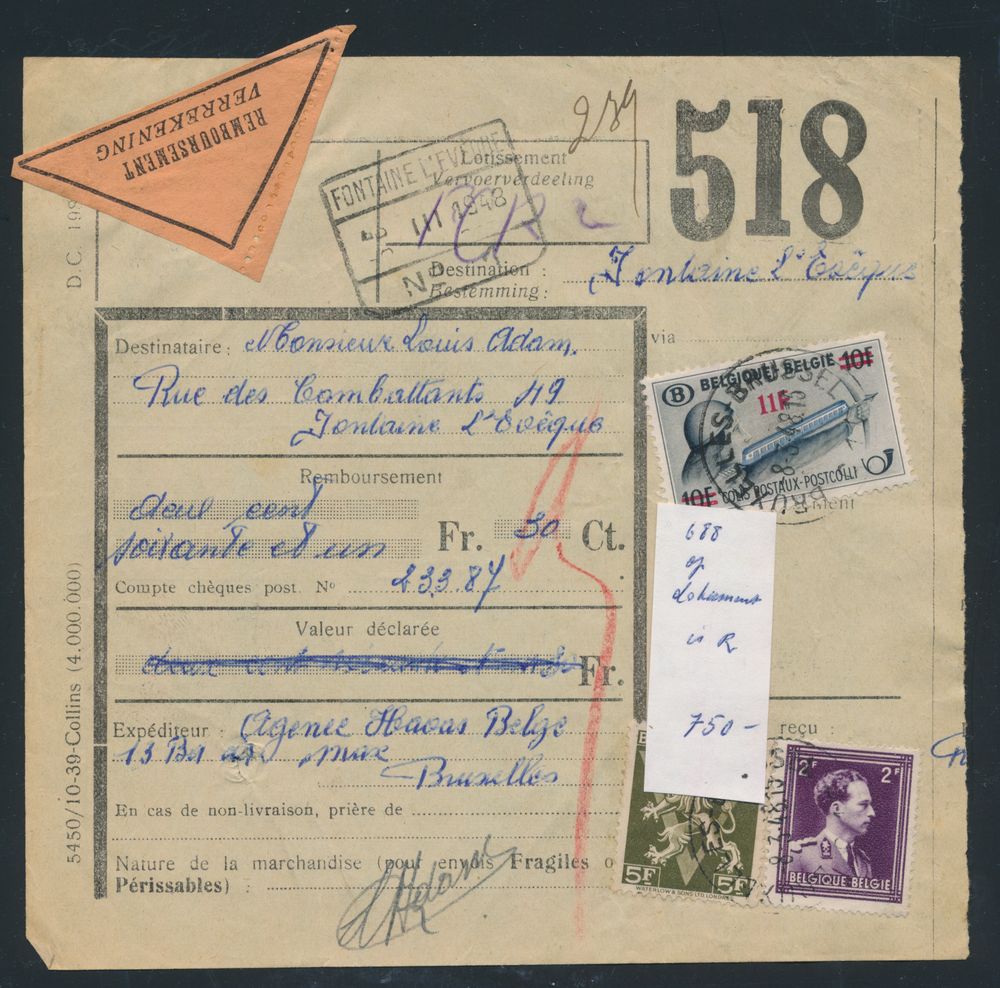 2733 PWST image1948 Transport division destination Fontaine L' Eveque, with unusual franking N° 688 and N° 693 in combi with TR 299 on stationery with COD offsetting, vf/to be checked(Image 1) (All Images)