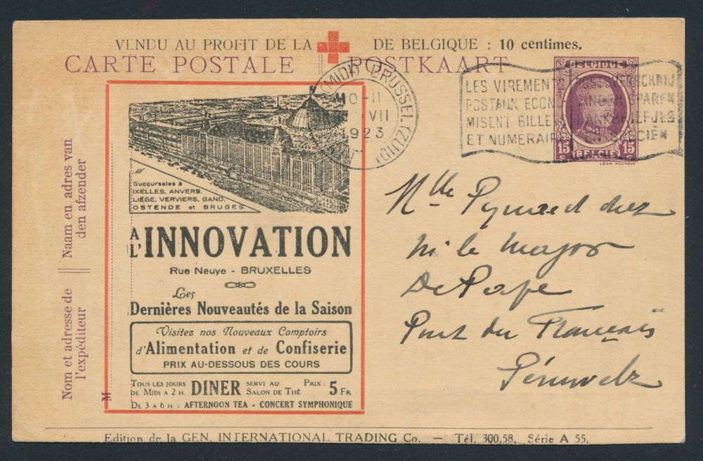 2721 PWST imagePKA 25 'Houyoux 15c lilac', Reclame a l'innovation', 'cancellation Brussels-South', vf (Cat. Waroquiers €300)(Image 1) (Image 2)