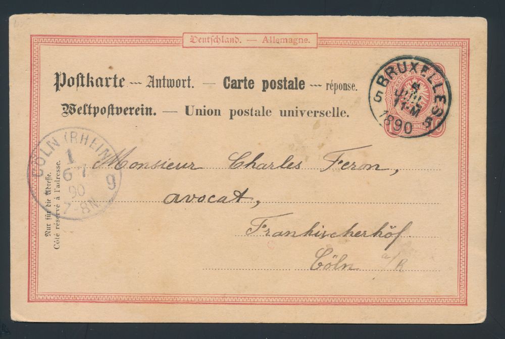 2728 PWST image1890 Reich Coat of arms "10pf. red" with Belgian cancellation EC "Bruxelles 5, 6 July 1890", vf(Image 1) (Image 2)