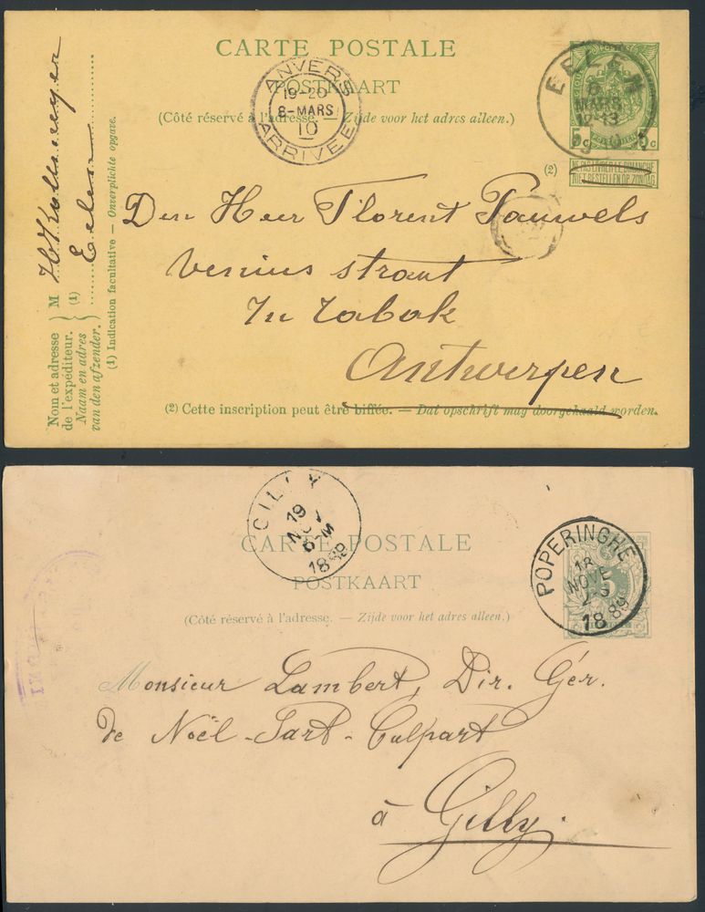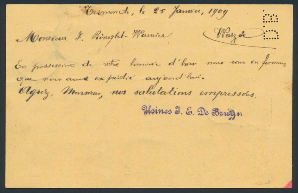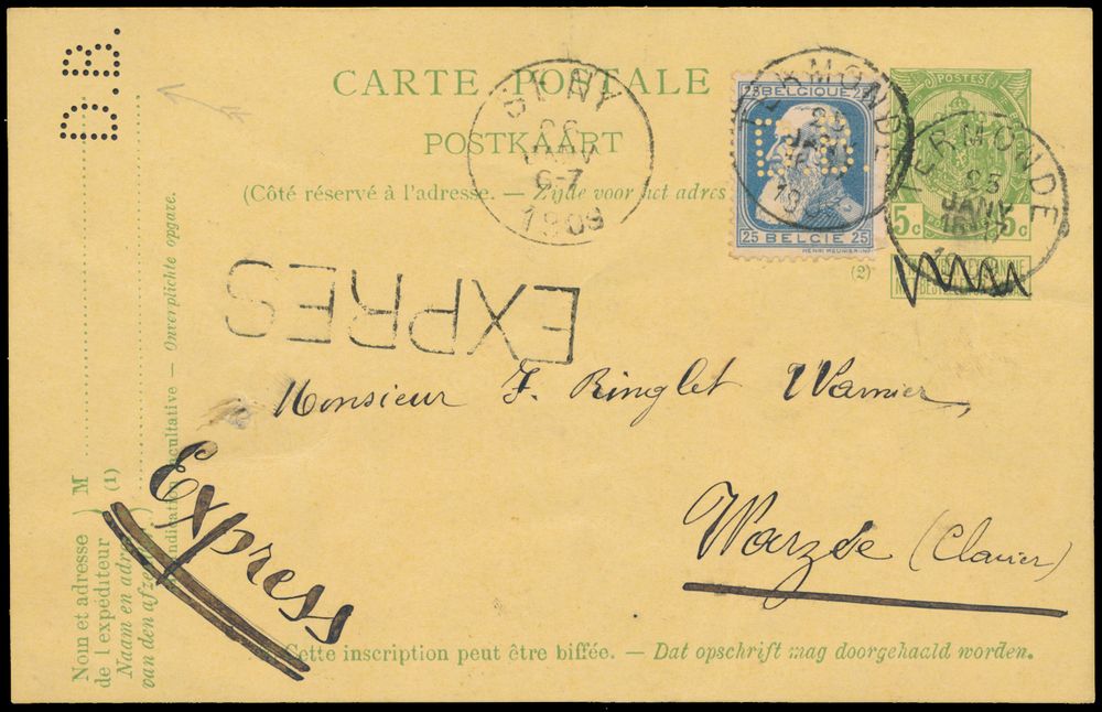 2724 PWST imageN° 37, with additional stamp N° 76, cancelled D.B. (Debruyn), with express stamp from Termonde, dated 25 January 09 to Warzee (Clavier), vf(Image 1) (Image 2)