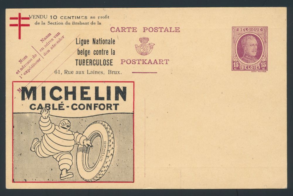 2722 PWST imagePKA 28 'Houyoux 15c lilac', Advertisement 'Michelin', vf (Cat. Waroquiers €250)(Image 1) (Image 2)
