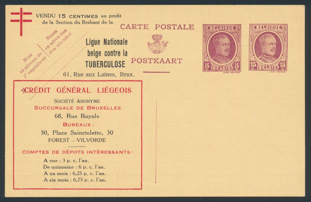 2723 PWST imagePKA 32 'Houyoux 15c + 5c lilac', 'Reclame Crédit Général Liegeois', vf (Cat. Waroquiers €200)(Image 1) (Image 2)