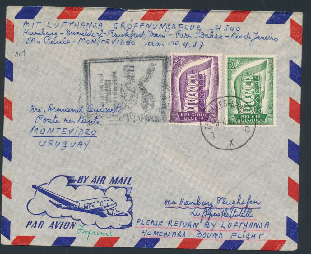 1957, n° 994 (3x), 851 and 857 on registered letter with
