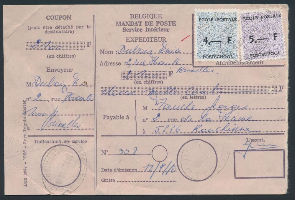 1970 Postal Mandate, franked with 2 stamps ("4fr." and