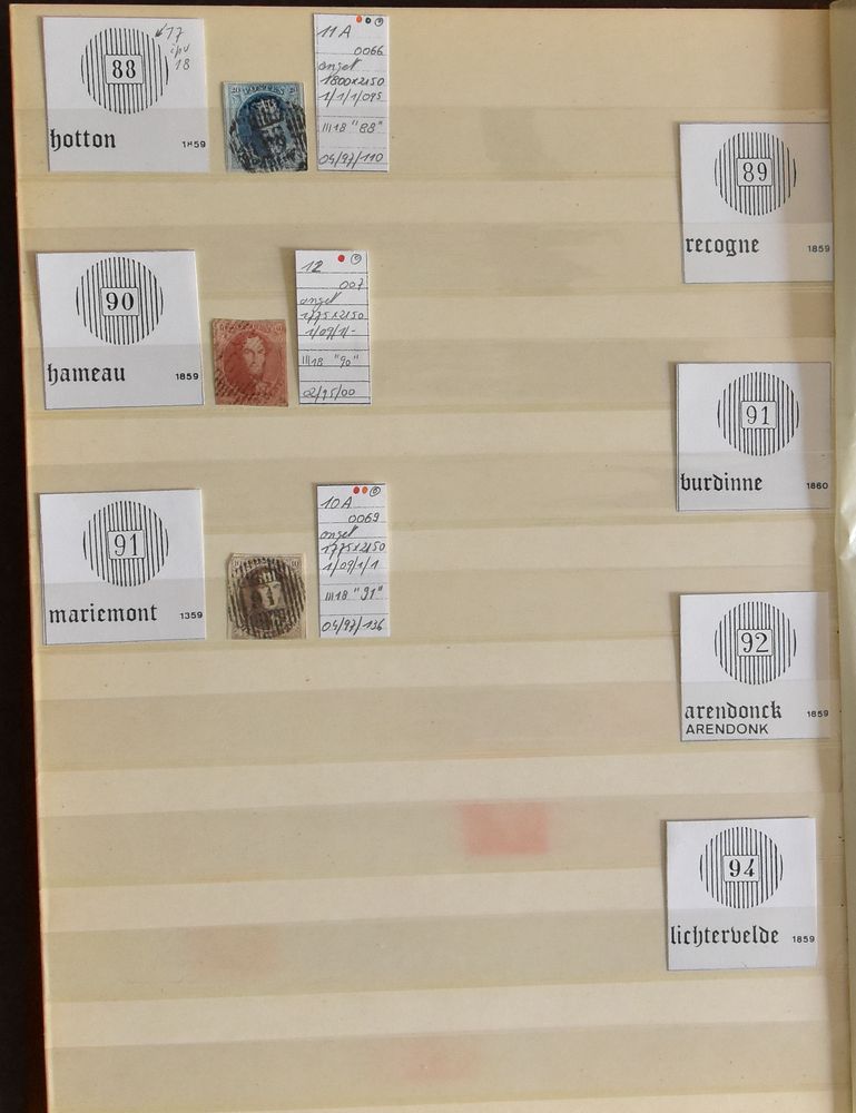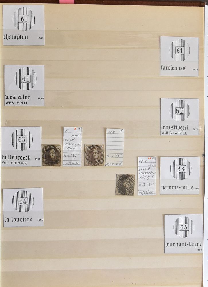 2850 0 imageSubpost office cancellations, Collection on medallions in stockbook, including many better ones (but in mixed condition), including D. 16 Frameries, D.33 Marbais, D.38 Nandrin, D. 53 Vertryck, D. 64 Hamme-Mille, etc. etc. vf/f/to be checked.(Image 1) (Image 2) (Image 3) (Image 4) (Image 5)