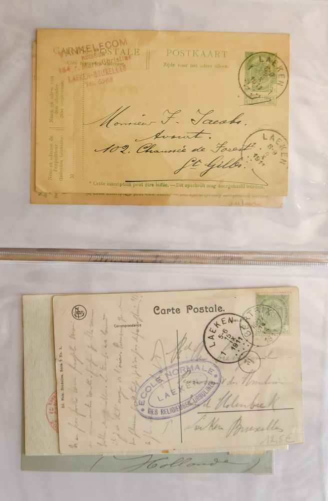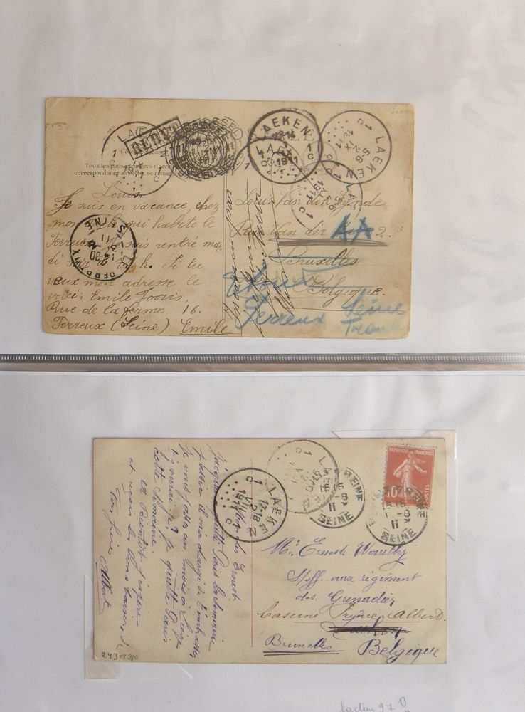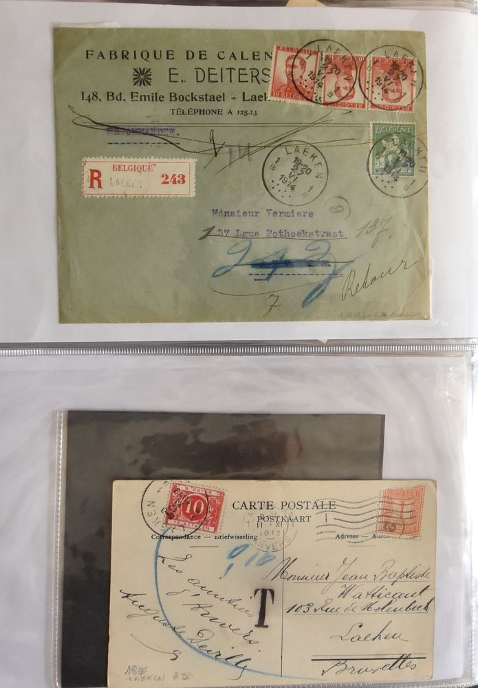 2863 image1911/1914 Collection of cancellations on 142 letters with stamps Laeken 1 A, B, C and D on Grove beard, coat of arms, Pellens, including strafport, rebut, postal forms, vf/f/to be checked(Image 1) (Image 2) (Image 3) (Image 4)