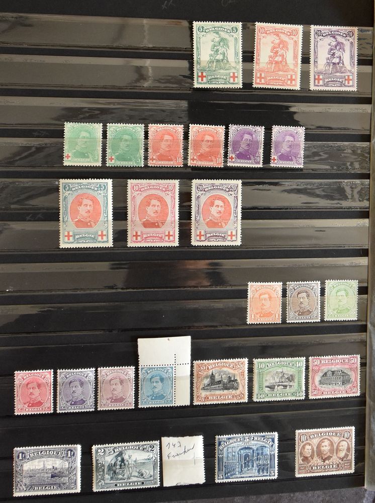 3032 nh/og/0 image1907/1970 Collection in 2 stockbooks and 1 ring binder, including 5 francs gest. (2x), 221/33 **, 1° Orval *, Sleeve stripes vertical **/*, Castles *, 325 gest., Sanatorium *, Cross of Lorraine *, Knight gest, 410 **, Poortman **, BL 5 **, -10% **, Yellows **, 792/97 **, BL 27/28 *, Athletics **/*/gest., 2-shutters * , Bruges *, BL 31 **, Baudouin glasses **, also doubles present, nominal, vf/f/to be checked(Image 1) (All Images)