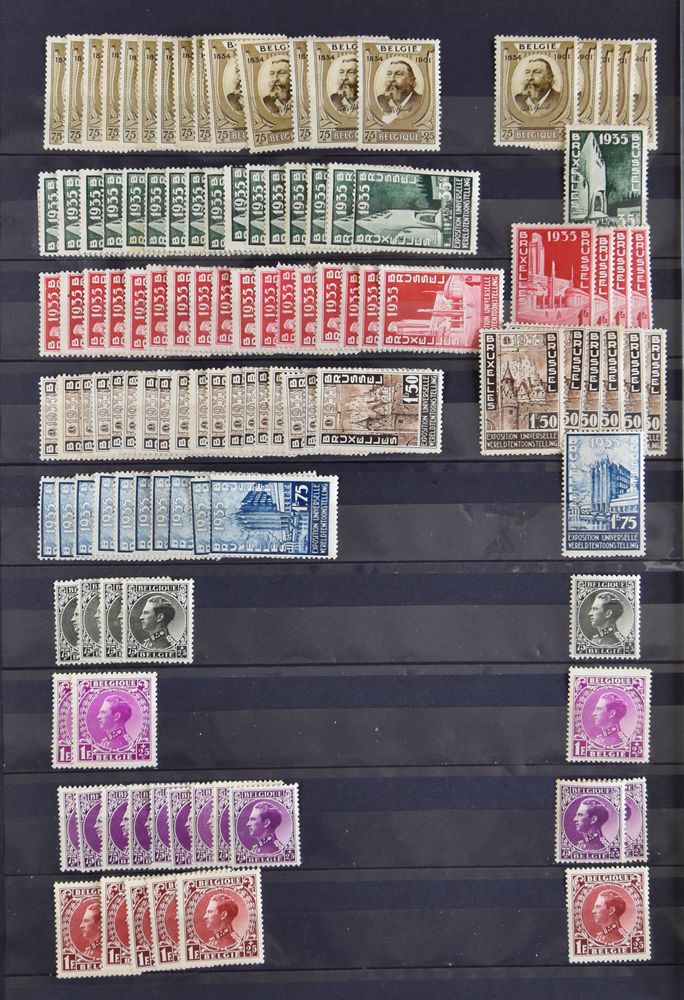 3057 0 image1935/2020 Leopold III, Baudouin glasses, figure on heraldic lion, Elström, Albert II, thousands of stamps in 3 stockbooks, vf/f/to be checked(Image 1) (Image 2) (Image 3) (Image 4) (Image 5)