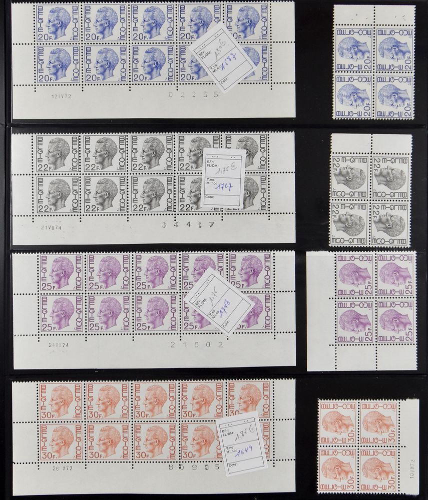 3070 nh image1953/2001 Collection of miscellaneous issues in Safe ring binder, including 927/29 ** and 943/45 ** both in block of four, Elström (including plate numbers, date stamps), roll stamps, Albert II, booklet taxipost with variety (3x), booklet 29A (2x), zf(Image 1) (Image 2) (Image 3) (Image 4) (Image 5) (Image 6) (Image 7)