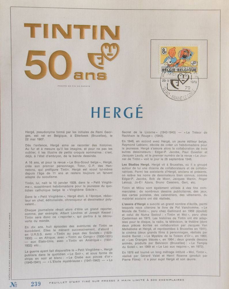 3062 0 image1941 + 1978/1980 HK collection, except Orval all gold leaves including Tintin, vf.(Image 1) (Image 2) (Image 3)