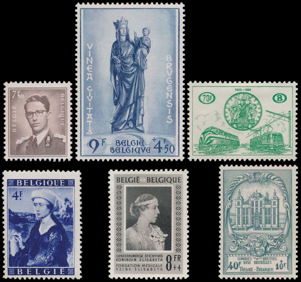 3066 nh image1948/1979 Collection in 2 Excellent albums including 792/97 **, Elisabeth **, UPU **, Baudouin glasses **, Bruges **, BL 26/29 **, BL 30 *, BL 31/32 **, service, SP **/*, vf/f(Image 1) (All Images)