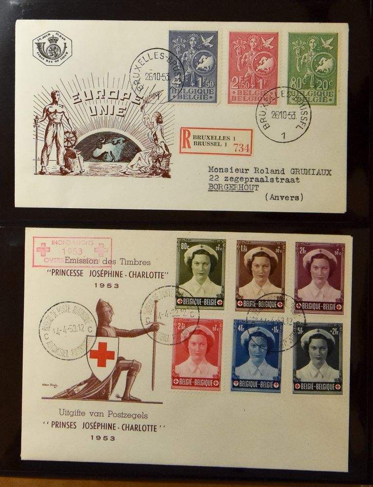3157 FDC image1953/2009, extensive collection in 32 albums, including Youth 1953, Breendonk 1954, Bruges, Refugees, Tintin '79 etc... etc... beautiful.(Image 1) (Image 2) (Image 3) (Image 4) (Image 5) (Image 6) (Image 7) (Image 8) (Image 9) (Image 10)