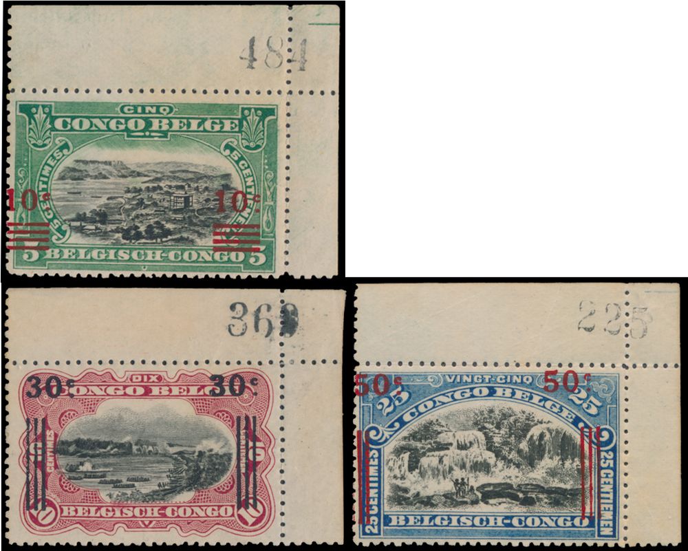 3256 og imageN° 85A, 87A, 87B and 91A "Récupération" overprint on earlier issues overprinted "CONGO BELGE", typo, vf/f (OBP €408)(Image 1) (All Images)