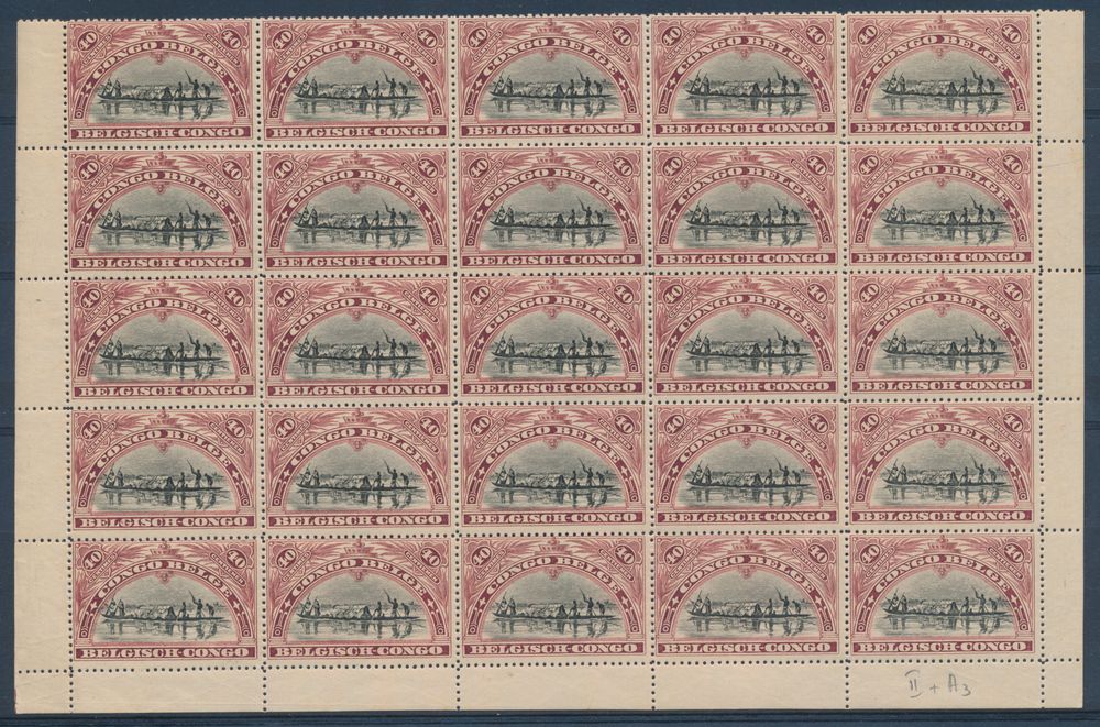 3248 nh imageN° 69 "50c. brown lilac" in a complete sheet of 50, combination III.4 + B.2 "black smoke", vf (OBP €2,250)(Image 1) (All Images)