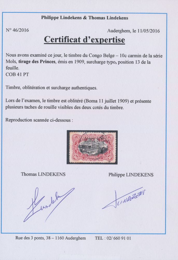 3241 0 image1909, group of 9 stamps of the Princes issue, OPB n° 40PT (position 38), 41PT (sheet position 13), 43PT (position 17), 46PT (position 31) and 48PT (position 48) and some with faults and damages, OPB n° 40PT (position 41), 41PT (position 13), 45PT (position 36), 46PT (position 11) and 47PT (position 20) all with Lindekens certificates, vf/f/to be checked(Image 1) (Image 2) (Image 3) (Image 4) (Image 5) (Image 6) (Image 7) (Image 8) (Image 9) (Image 10) (Image 11)