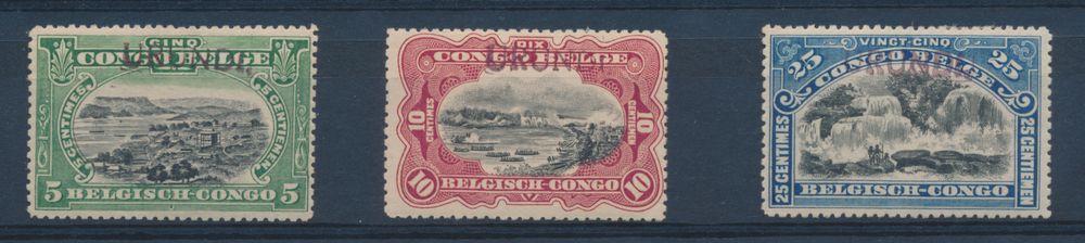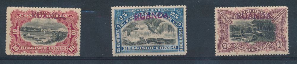3350 og imageN° 16B, 17B and 19B "5c. green", "10c. carmine", "25c. blue", overprinted "URUNDI", overprint type Le Havre on the back stamped by the CBE (Commission Belge d'Expertise), vf (OBP €230)(Image 1) (All Images)