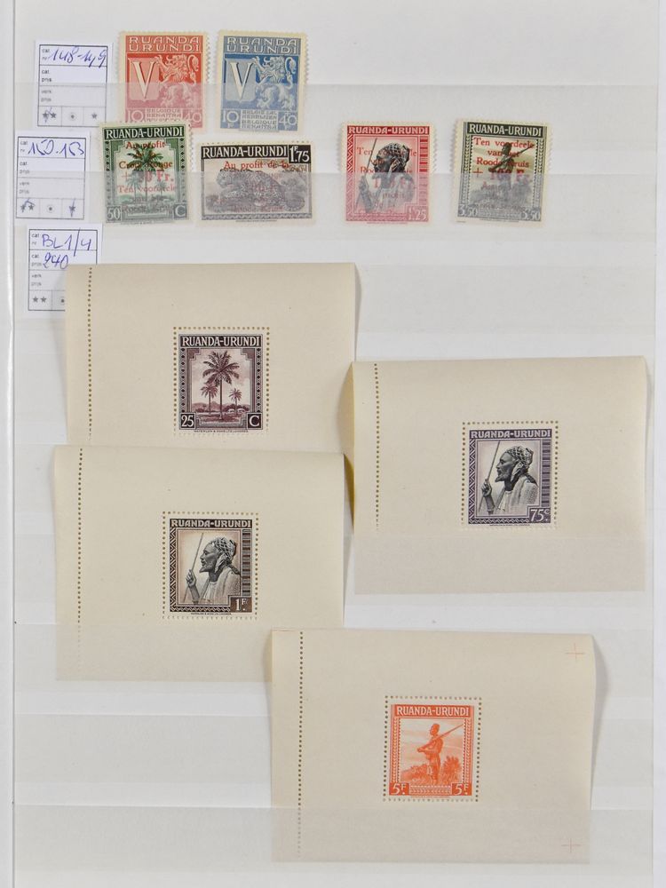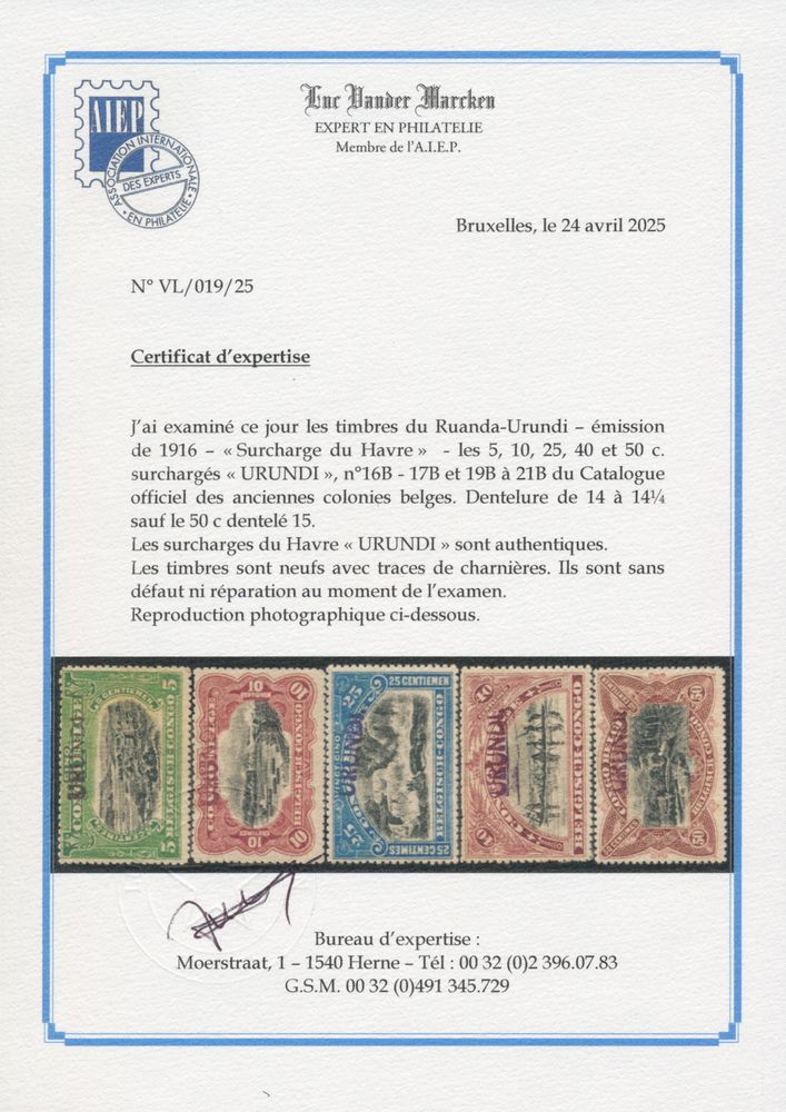 3348 og imageN° 16 B, 17 B and 19 B/21 B, with overprint 'Urundi' from Le Havre, 50 cent. perf. 15, the other 14, with certificate, vf (OBP € 443)(Image 1) (Image 2) (Image 3)
