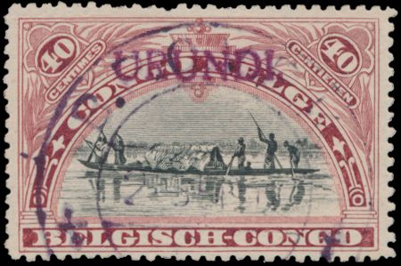 3345 0 imageN° 20 "40c. brun carmine" with overprint "TOMBEUR", "URUNDI" cancelled "BPCVPK 2 SEP" (number without stamp) , rare, on the back small oval cancellation of the CBE (Commission Belge d'Expertise), minus 2 teeth, f(Image 1) (All Images)