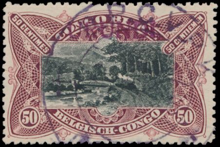 3346 0 imageN° 21 "50c. brown lilac" with overprint "TOMBEUR", "URUNDI", cancelled "BPCVPK" (number without stamp), rare, on the back small oval stamp of the CBE "Commission Belge d'Expertise", vf.(Image 1) (All Images)