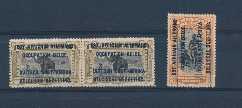 3344 0 imageN° 19 "25c. blue" with overprint "TOMBEUR", "URUNDI", cancelled "Muanza" without date (German "Prise de guerre" cancel used by Belgian troops, extremely rare on "TOMBEUR" stamp), on the back small oval CBE (Commission Belge d'Expertise) cancel, vf - See cover photo(Image 1) (All Images)