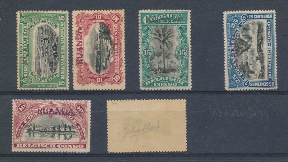 3349 og imageN° 9B/15B Complete set with "RUANDA" overprint type Le Havre, "25c." and "50c." perforated 15, all stamps signed "John Roels" on back, vf (OBP €1,150)(Image 1) (Image 2)